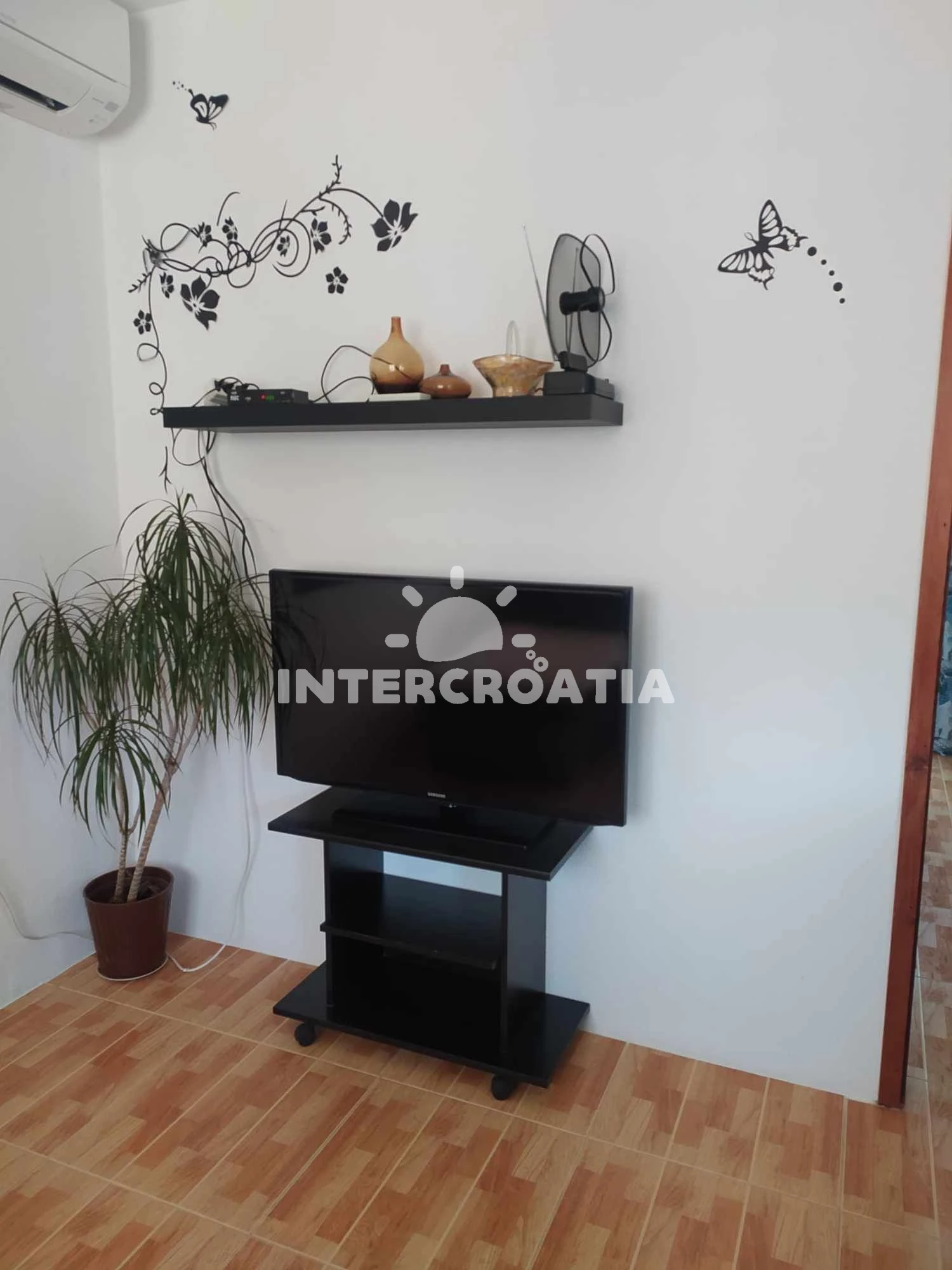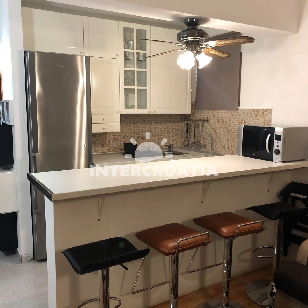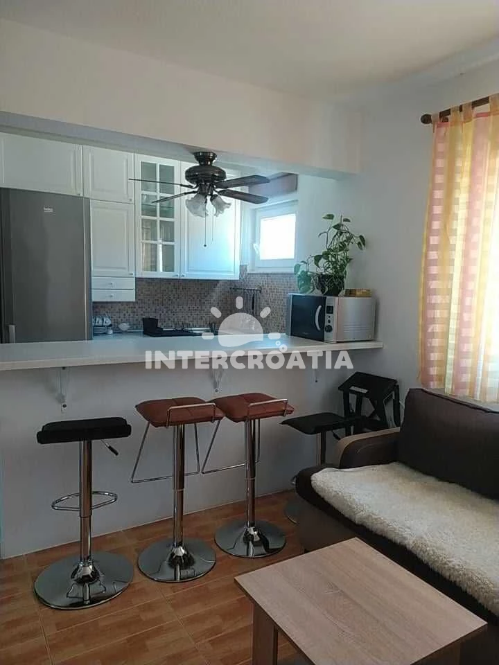 Apartmán (60 m2) s balkonem, a výhledem na moře. Nachází se v 1. patře objektu. Apartmán má 2 ložnice a je vhodný pro až 5 osob. Kuchyňská linka je vybavena varnou deskou, toustovačem, troubou,… Více informací