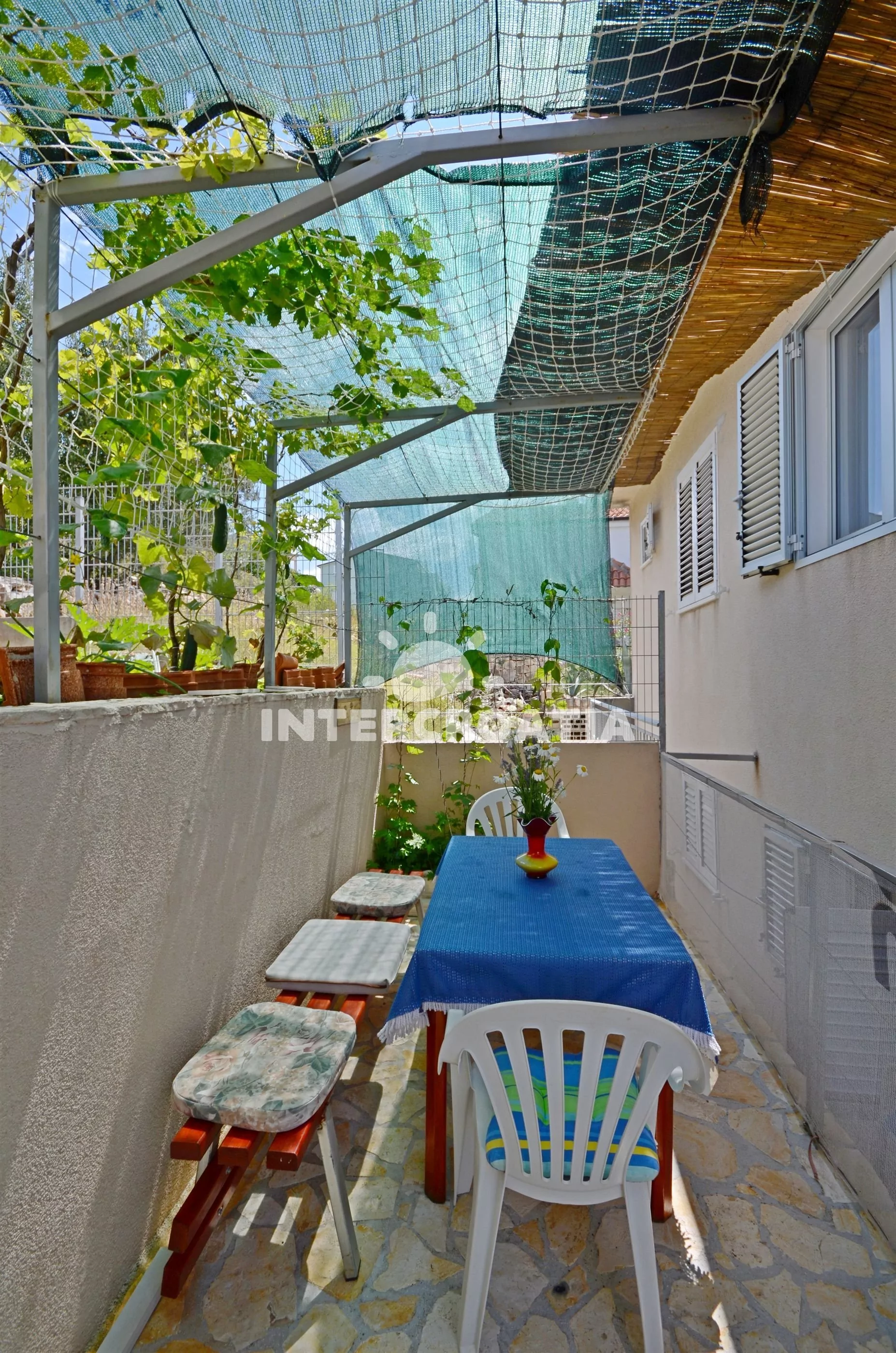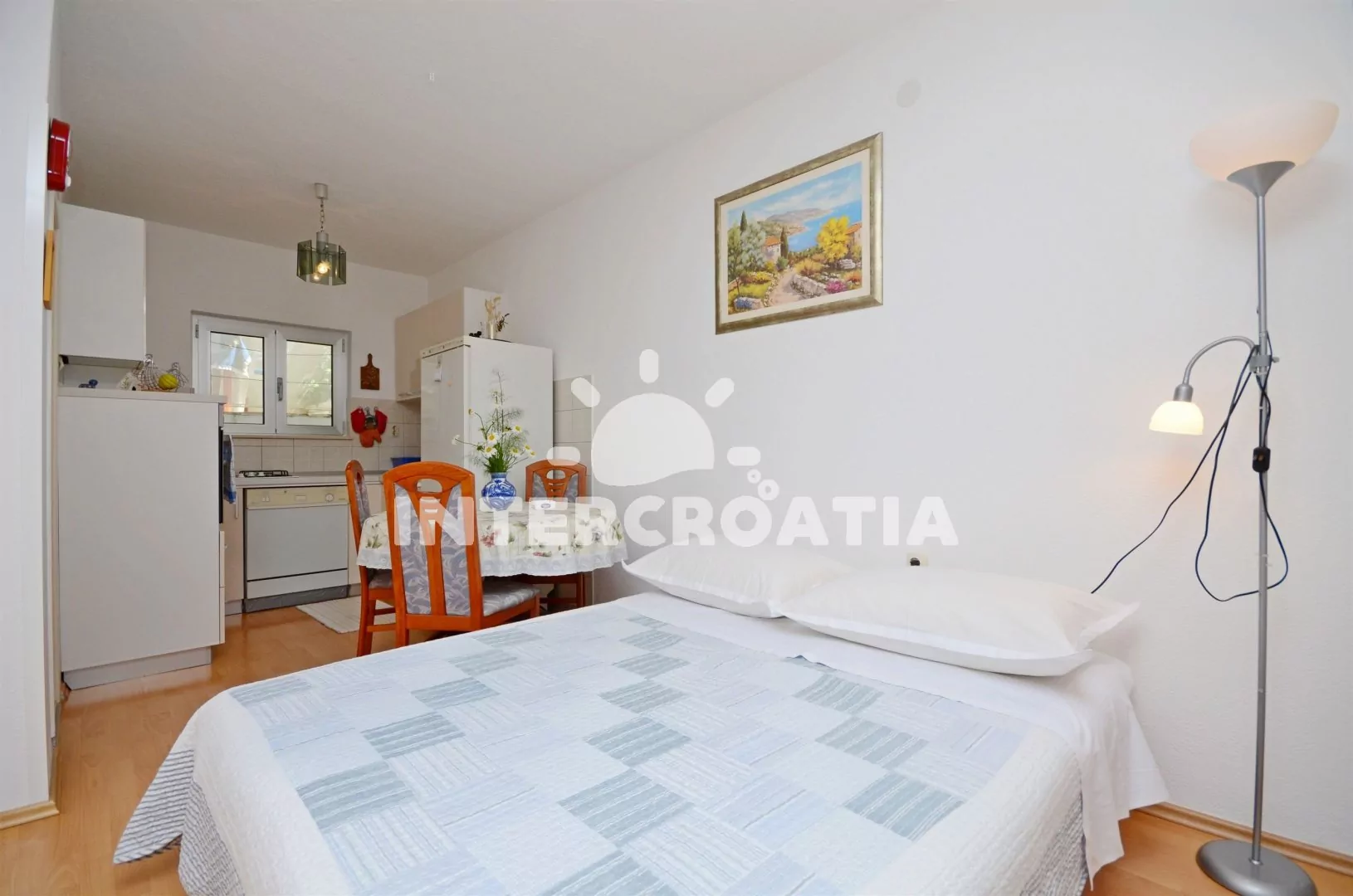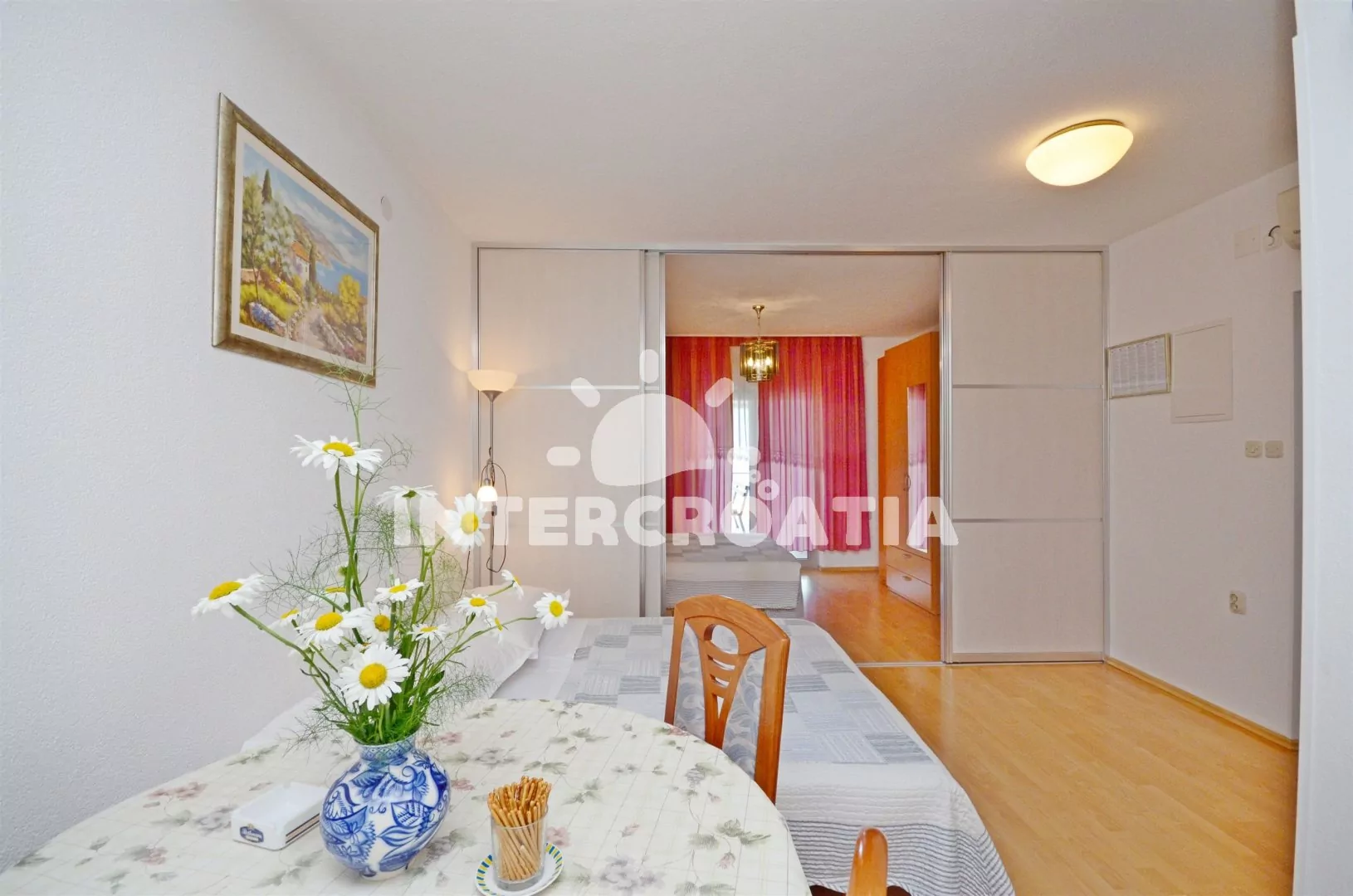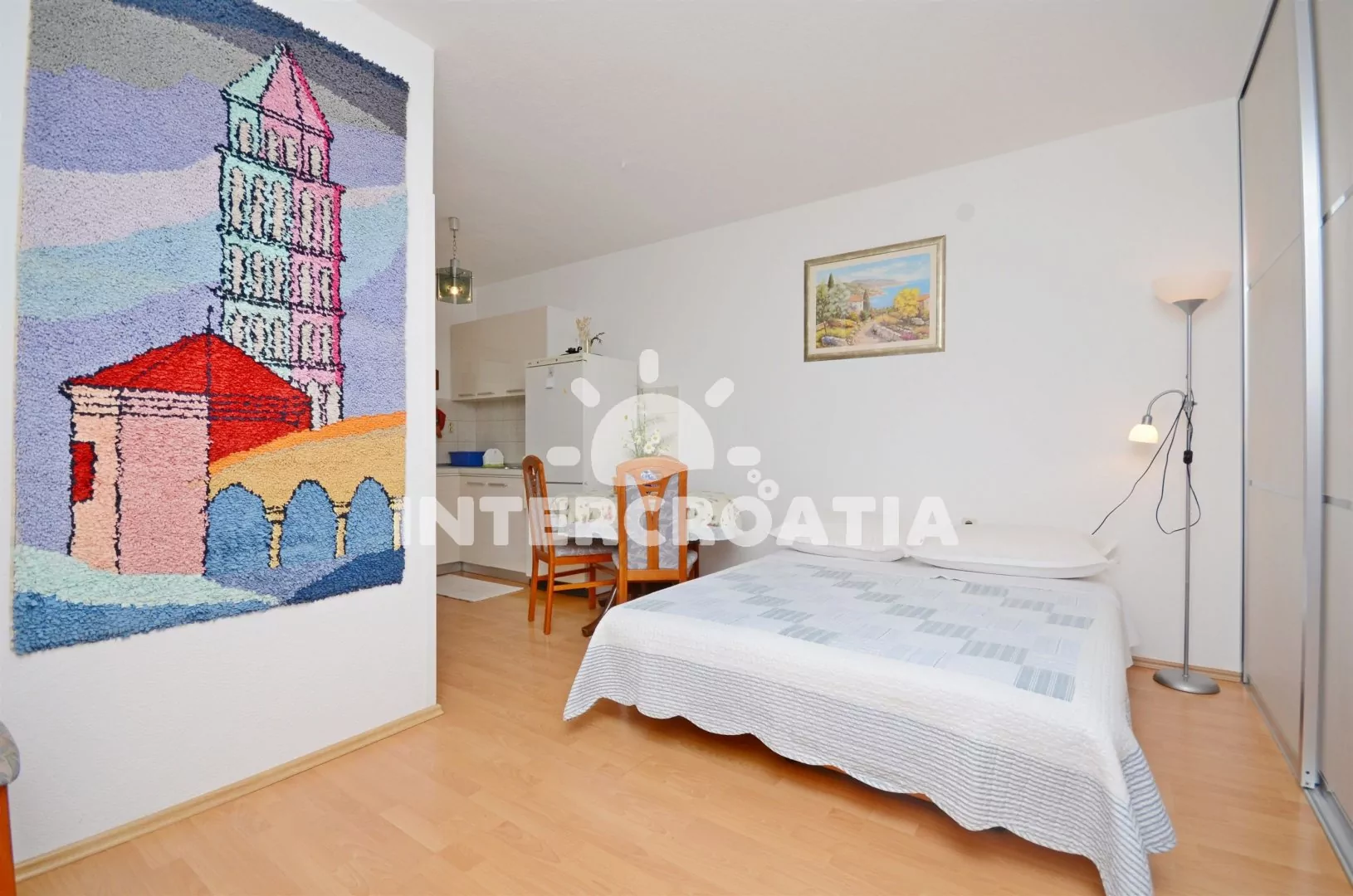 Ve Střední Dalmácii, 5,2 km jihovýchodním směrem od turistického letoviska Trogir a 5,9 km jižně od malebné destinace Mastrinka. Apartmán je vzdálen 150 m od moře a 300 m pěší chůzí od oblázkové pláže.