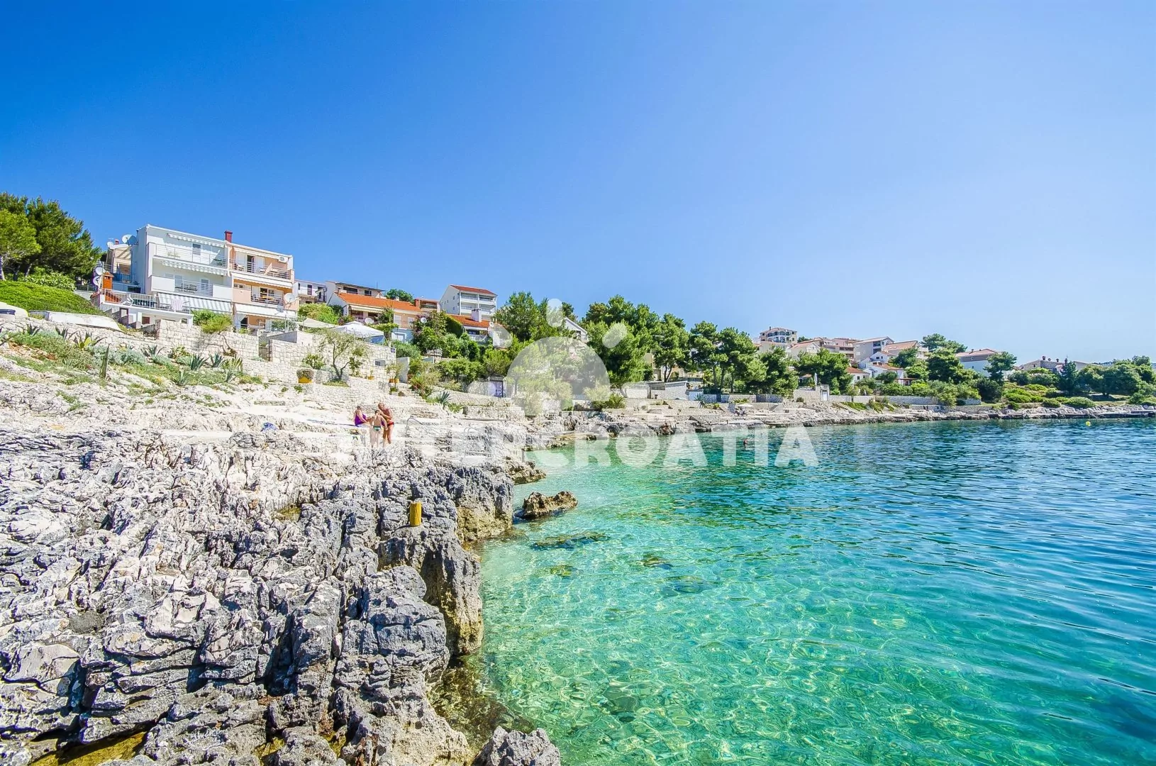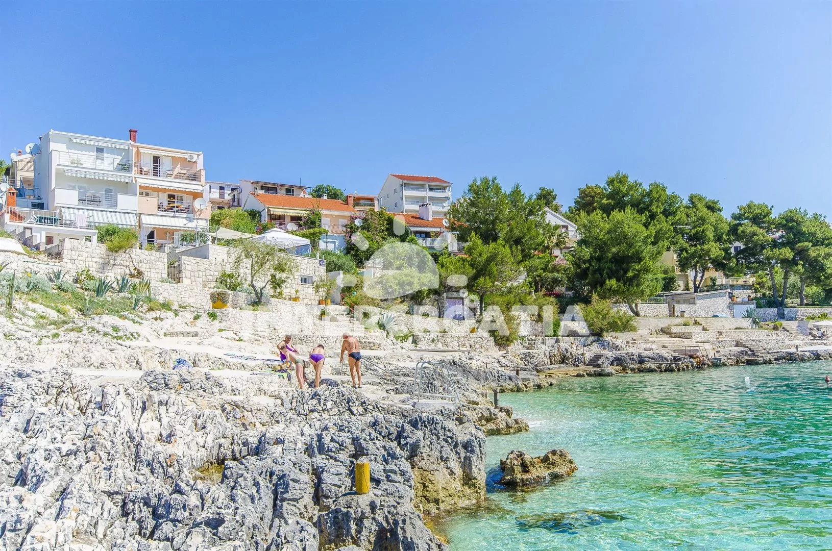 Ostrov Čiovo ve Střední Dalmácii město Okrug Gornji. Křišťálově čisté moře s pláží vás okouzlí 20 m od ubytování.