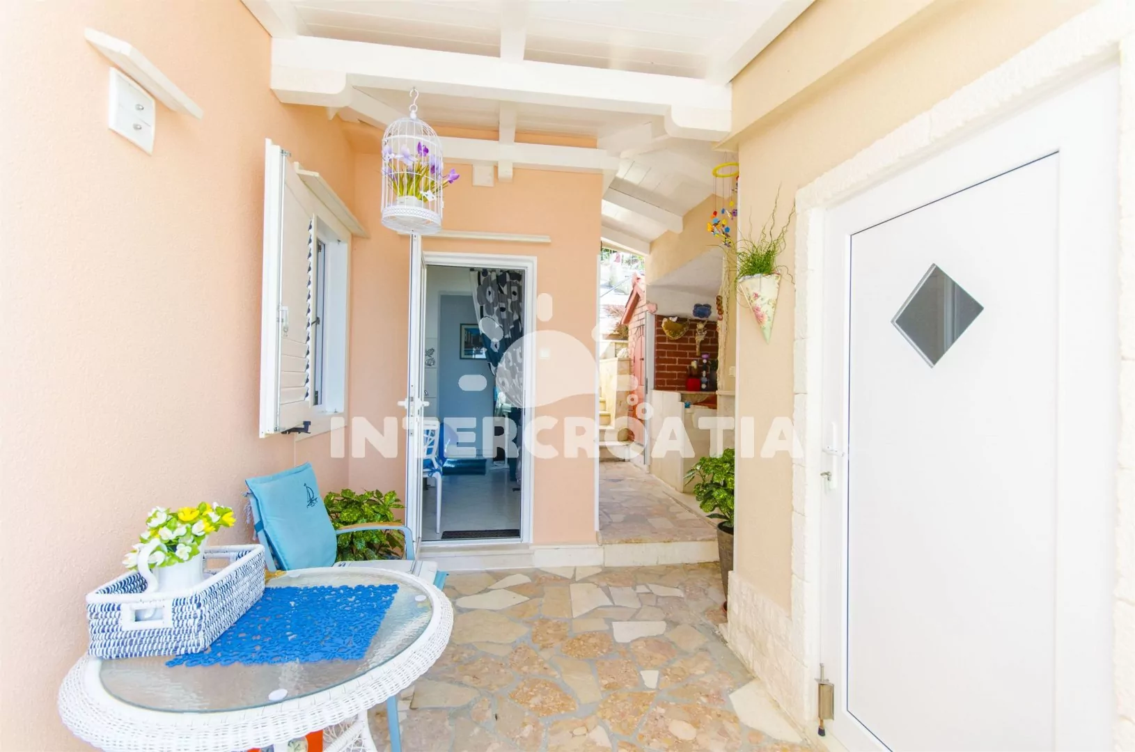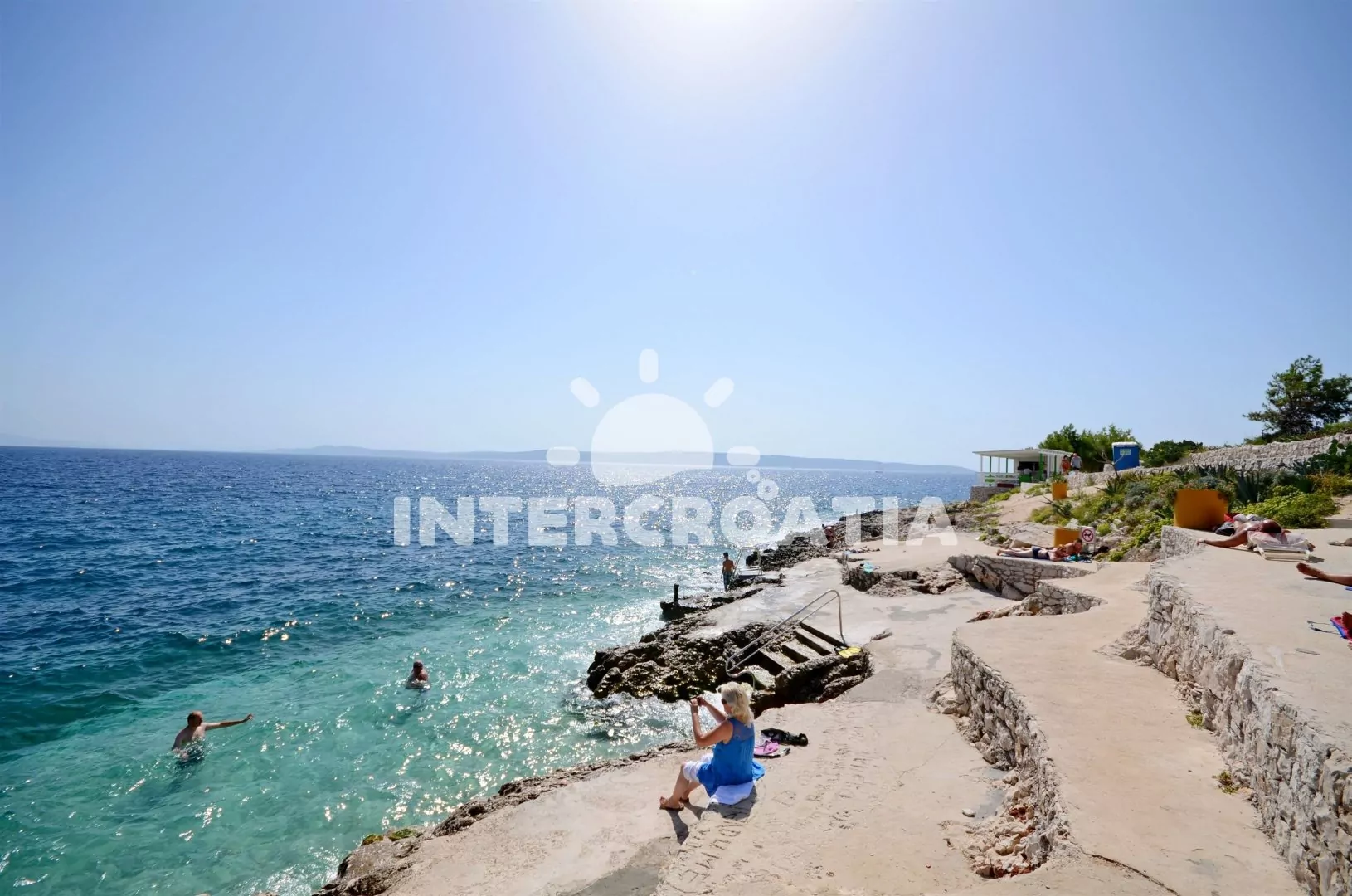 Vzdálenosti: Moře a pláž 20 m, centrum, veřejná doprava, ambulance, lékárna, směnárna, pošta 700 m, restaurace, půjčovna kol a motorových člunů 200 m, bar 50 m, supermarket 250 m, muzeum 500 m, potápění, tenis 1 km, čerpací stanice, banka, přístav, diskotéka 5 km, letiště 10 km, trajekt 35 km.