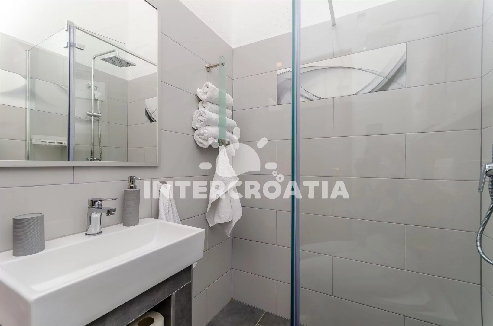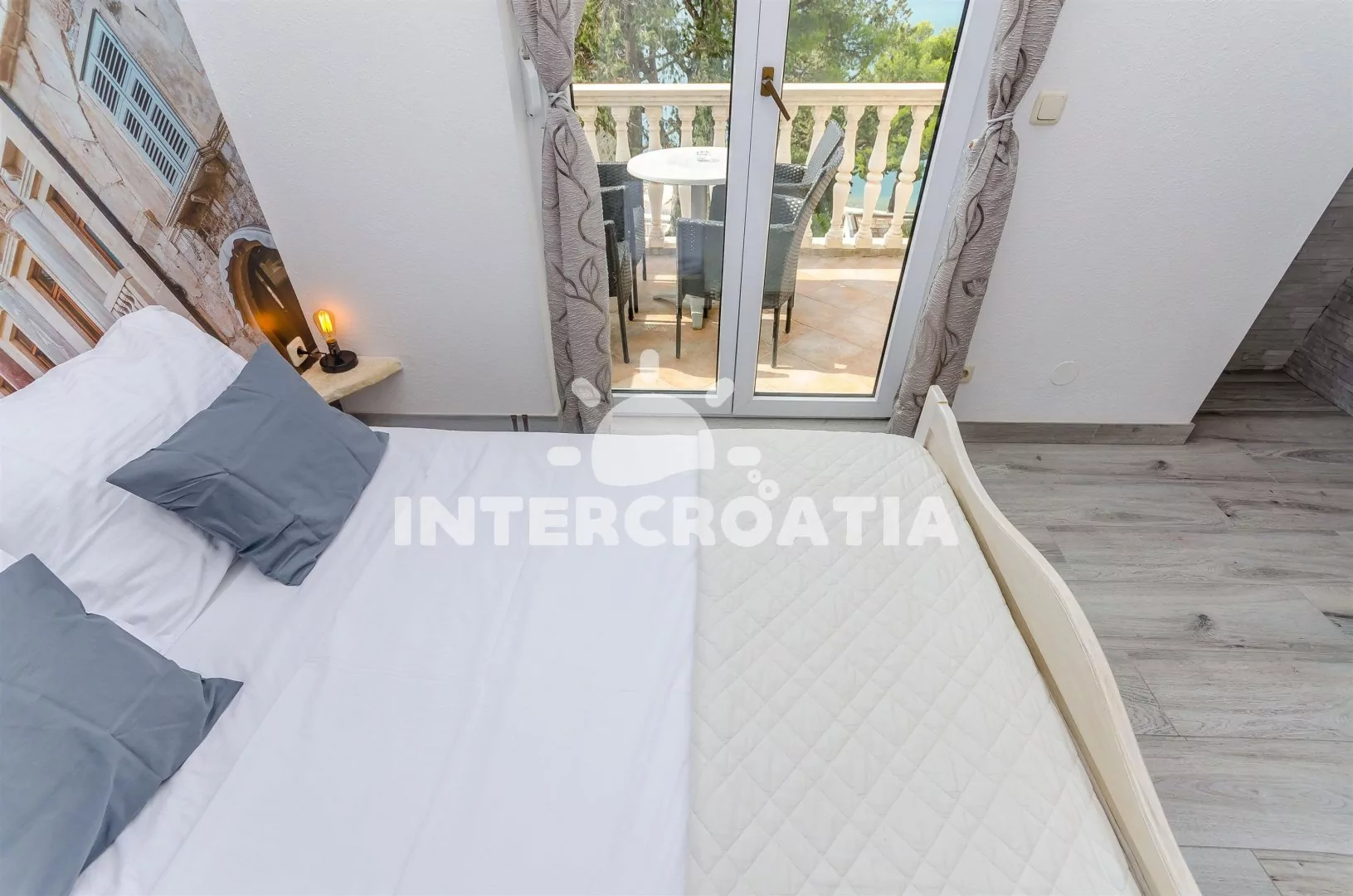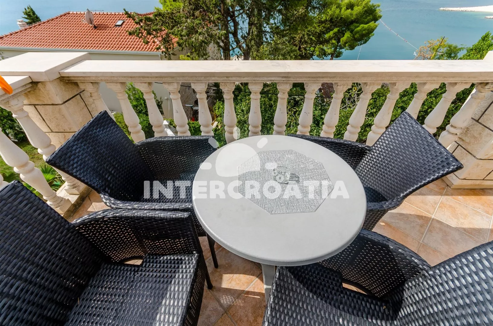 Třípodlažní apartmánový dům s balkonem, výhledem na moře a dobrou dostupností pěšky na místní vyhlášenou pláž.