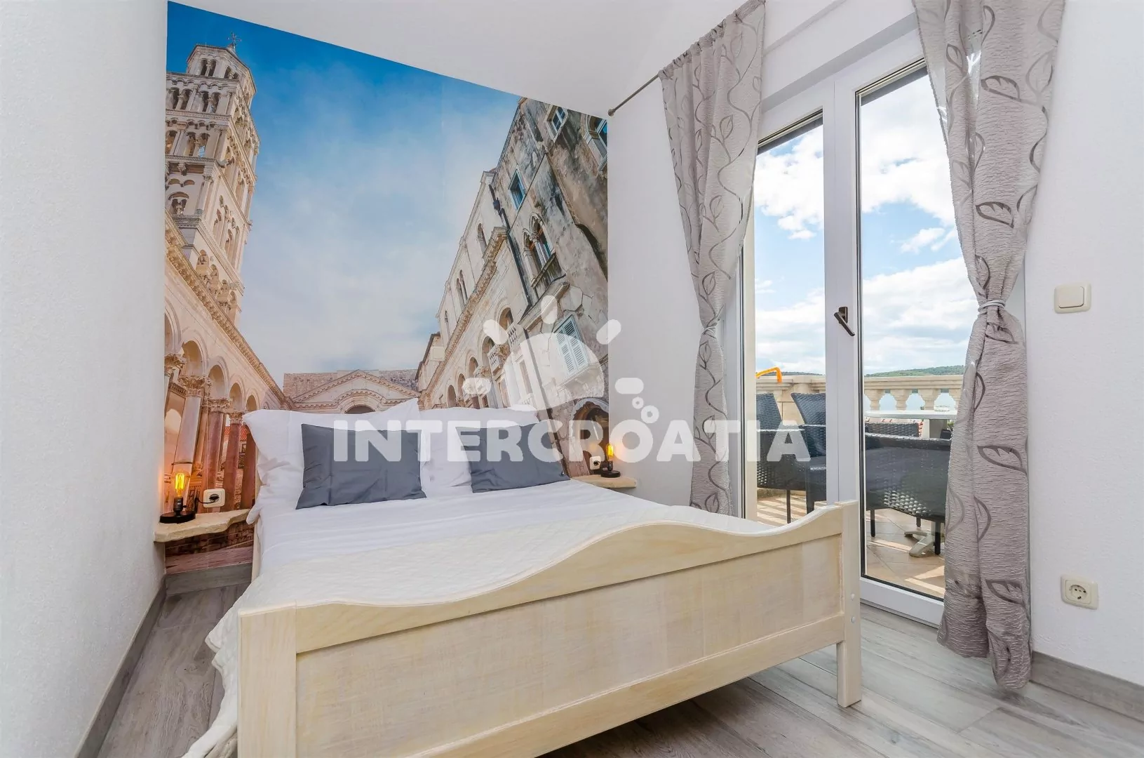 Vzdálenosti: Moře 200 m, pláž (oblázková) 350 m, centrum 1,8 km, market 300 m, pošta 1 km, lékárna 1,5 km, nemocnice 1,5 km, restaurace 300 m, muzeum 2 km, směnárna 200 m, banka 2 km, přístav 1 km, kotviště pro čluny 2 km, potápěčský klub 200 m, půjčovna motorových člunů 500 m, půjčovna kol 200 m, tenisové kurty 2 km, minigolf 5 km, diskotéka 2 km, bar 300 m, čerpací stanice 2 km, veřejná doprava 200 m, trajekt (Split) 32 km, letiště (Split) 7 km.