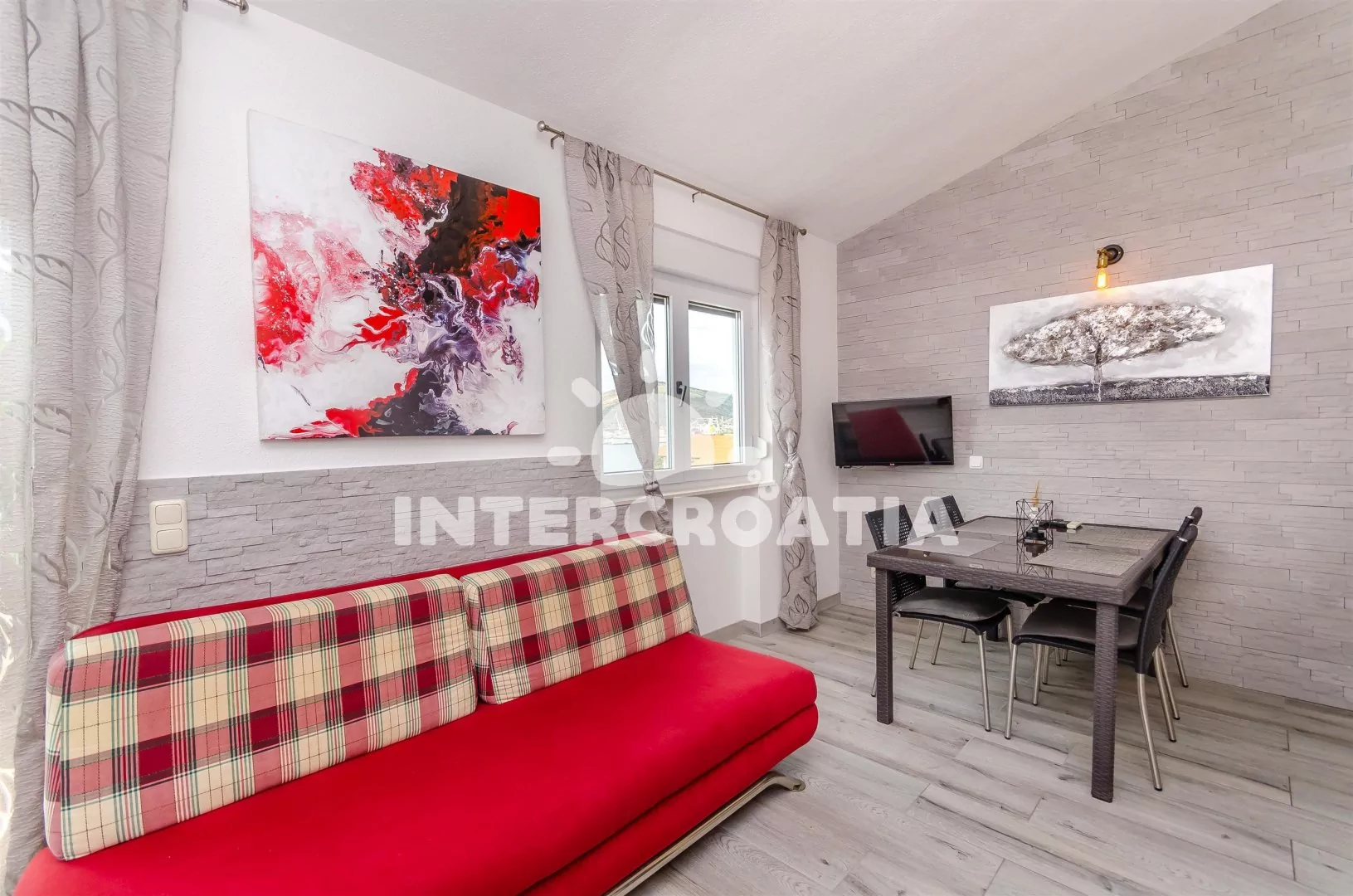 Ve Střední Dalmácii, 2,4 km na jih od tzv. „malých Benátek“ Trogir a 4,8 km jihozápadním směrem od menšího letoviska Mastrinka. Vaše ubytování je vzdáleno 350 m pěšky od velké oblázkové pláže.