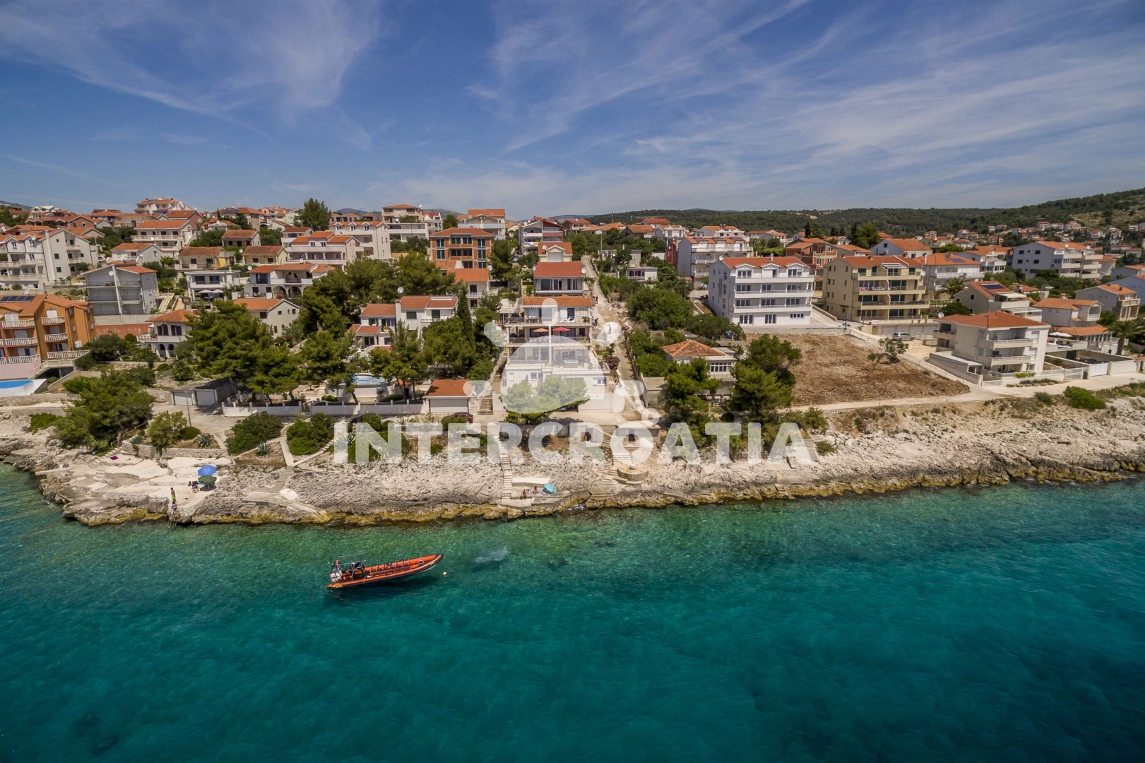 Vzdálenosti: Moře 10 m, pláž 10 m (kamenné a betonové desky), restaurace 100 m, bar 100 m, tenisové kurty 100 m, supermarket 150 m, potápění 200 m, půjčovna kol 200 m, veřejná doprava 500 m, centrum 1 km, pošta 1 km, ambulance 1 km, lékárna 1 km, směnárna 1,0 km, půjčovna motorových člunů 2 km, diskotéka 2 km, banka 4 km, muzeum 4 km, čerpací stanice 5 km, letiště (Split) 7 km, trajekt (Split) 35 km,
