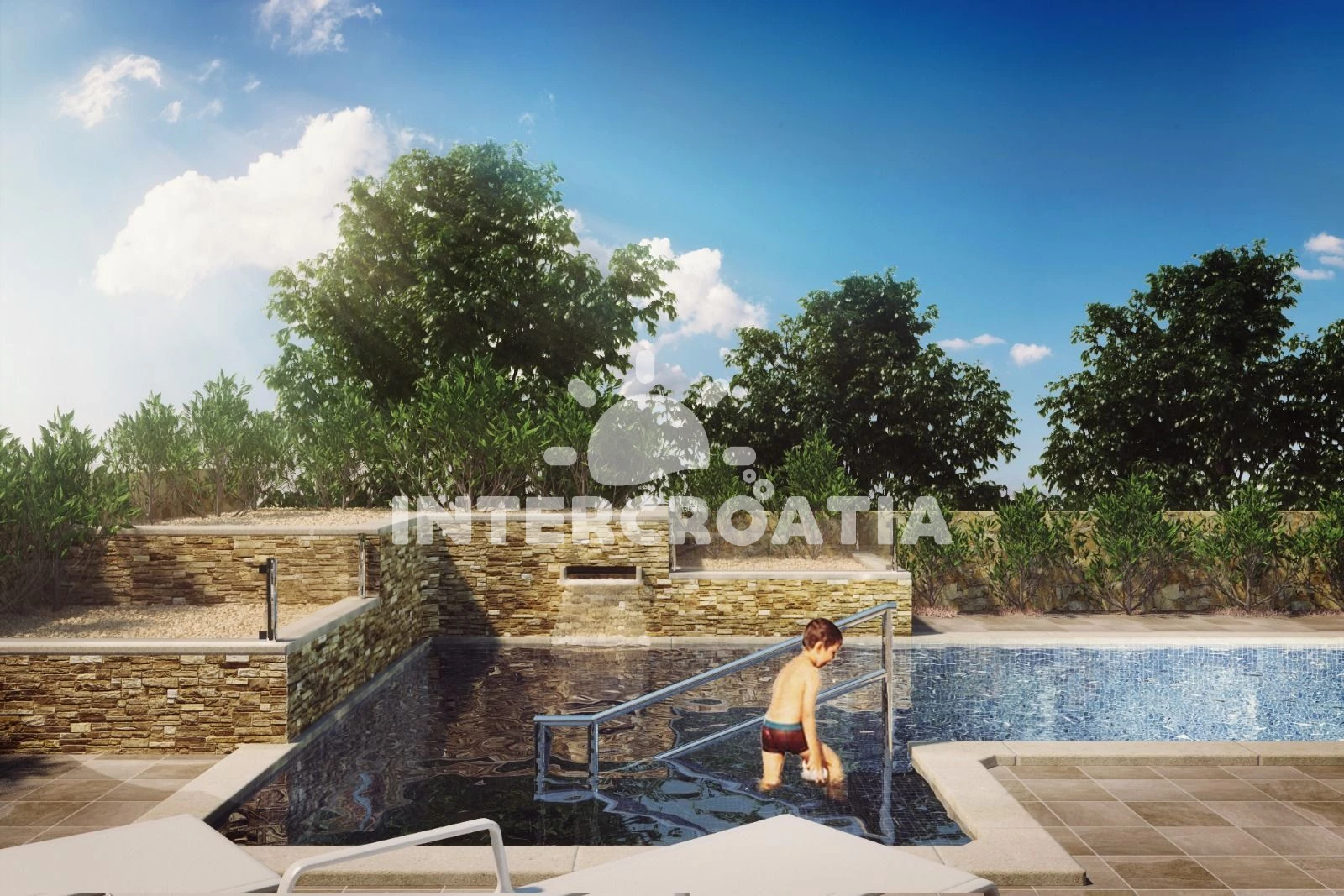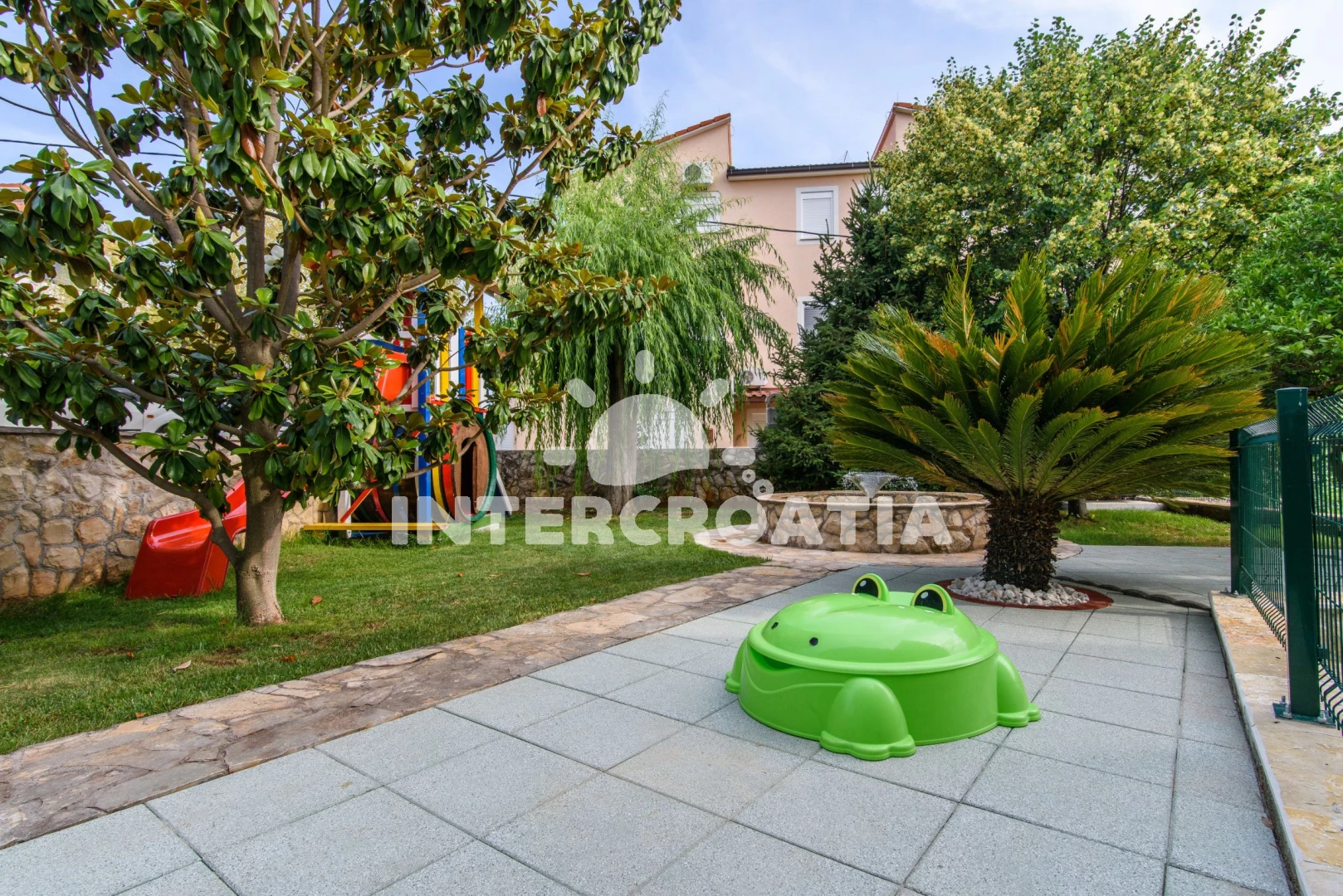 Apartmán se nachází 40 m od moře a pláže. Pláž je oblázková. Apartmán disponuje bazénem s lehátky pro ubytované hosty. U objektu je k dispozici společná zahrada s posezením a grilem. Parkování je před domem.
