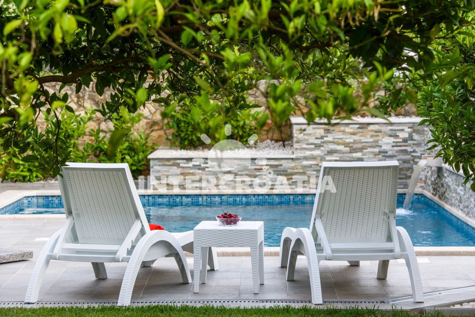 Apartmán se nachází 40 m od moře a pláže. Pláž je oblázková. Apartmán disponuje bazénem s lehátky pro ubytované hosty. U objektu je k dispozici společná zahrada s posezením a grilem. Parkování je před domem.