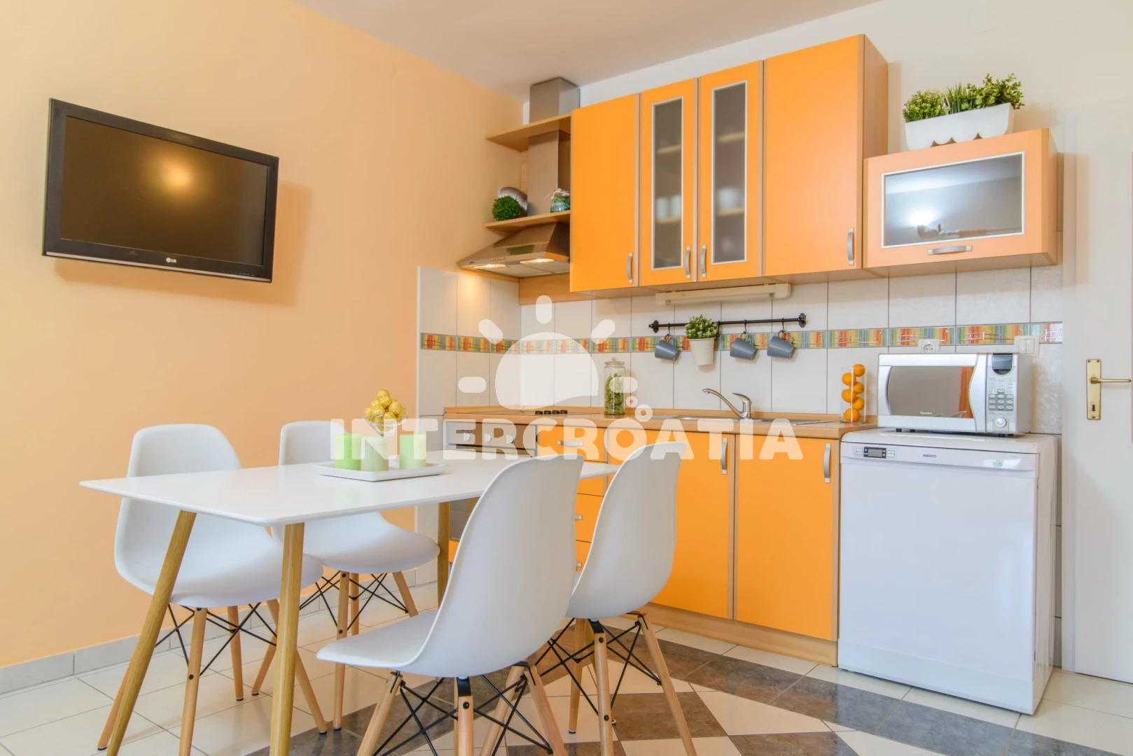 Domácí zvířata nejsou povolena. V ceně pobytu zahrnuto: WiFi, klimatizace (část místností), topení, povlečení, ručníky, pračka, dětská postýlka (služba na požádání), závěrečný úklid, pobytová taxa. Pronajímatel se dorozumí chorvatsky, anglicky, Pronajímatel vás bude očekávat po 16:00. V den odjezdu je nutné vyklidit apartmán do 09:00.
