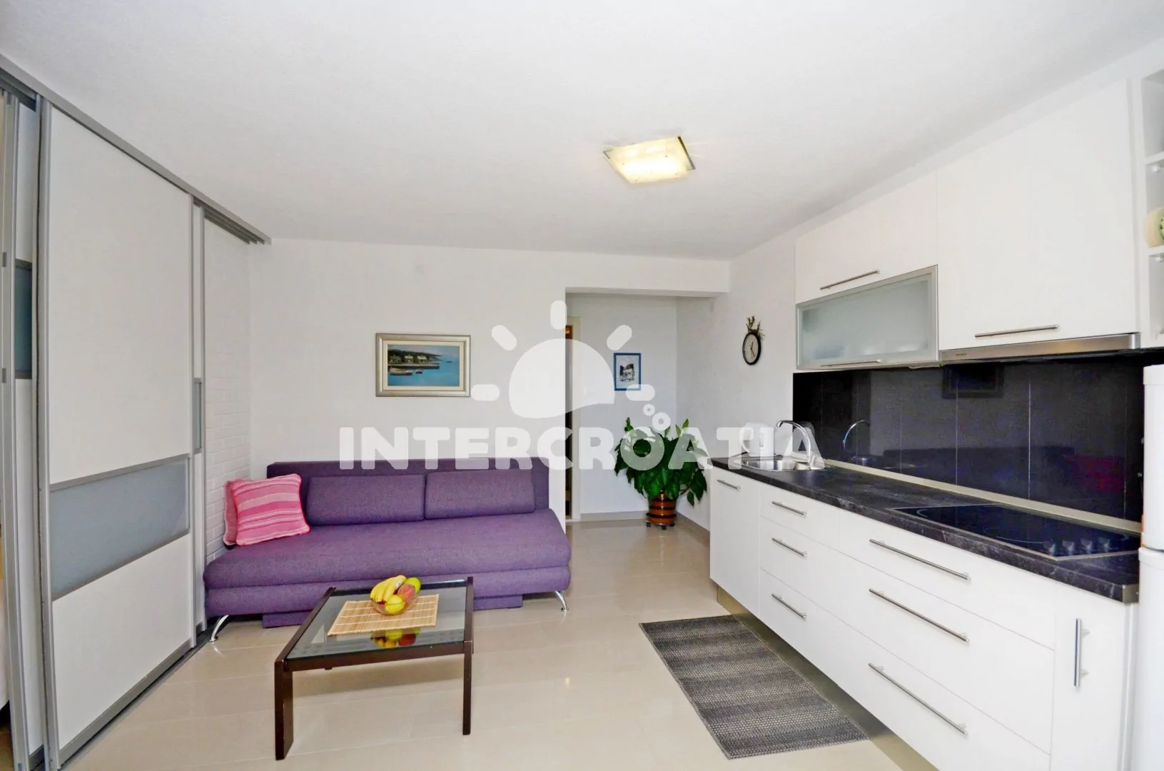 Apartmán (42 m2) s vlastní terasou, výhledem na moře se nachází v přízemí domu a je vhodný pro 4 osoby. Obývací pokoj je spojený kuchyní. Kuchyňská linka je vybavena sklokeramickou varnou deskou,…