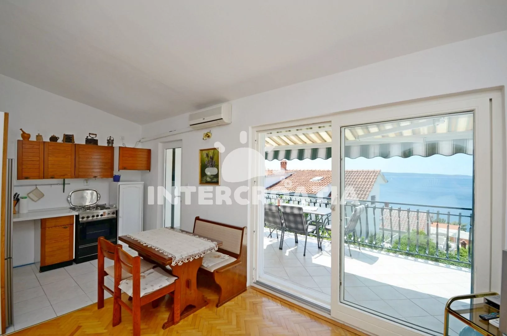 Apartmán (42 m2) s vlastní terasou, výhledem na moře se nachází v 1. patře domu a je vhodný pro 4 osoby. Obývací pokoj je spojený kuchyní. Kuchyňská linka je vybavena varnou deskou, troubou,…
