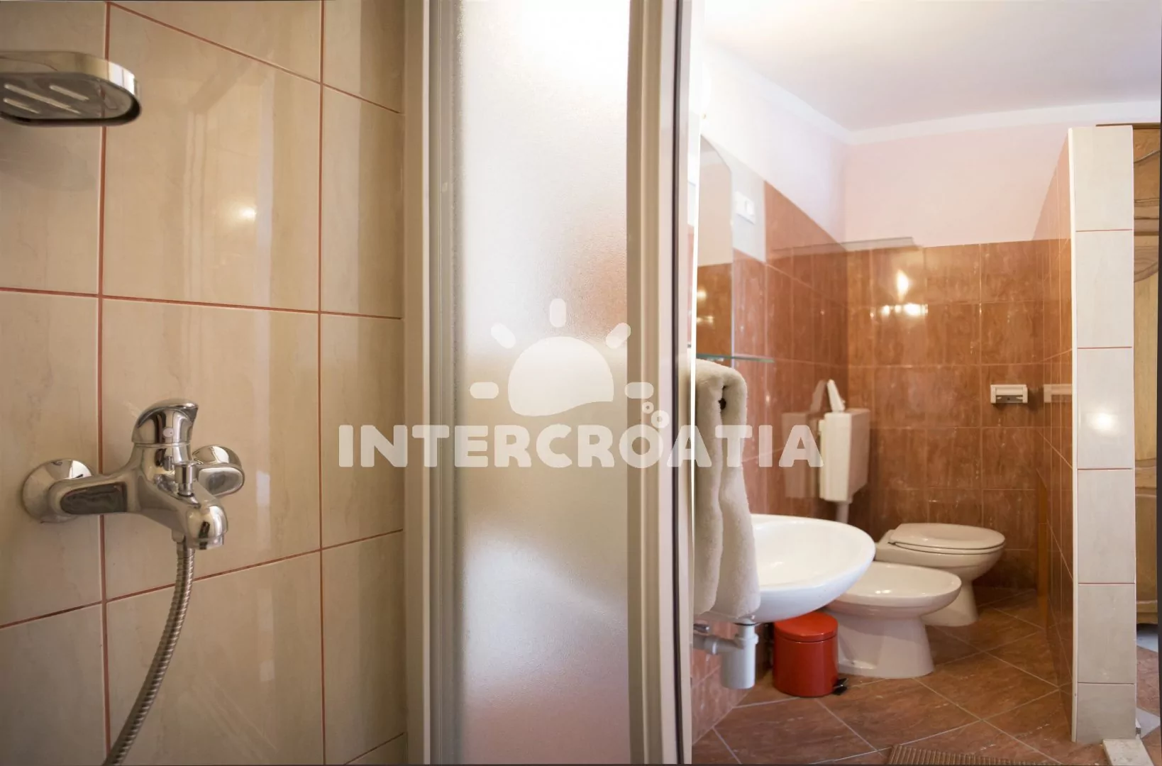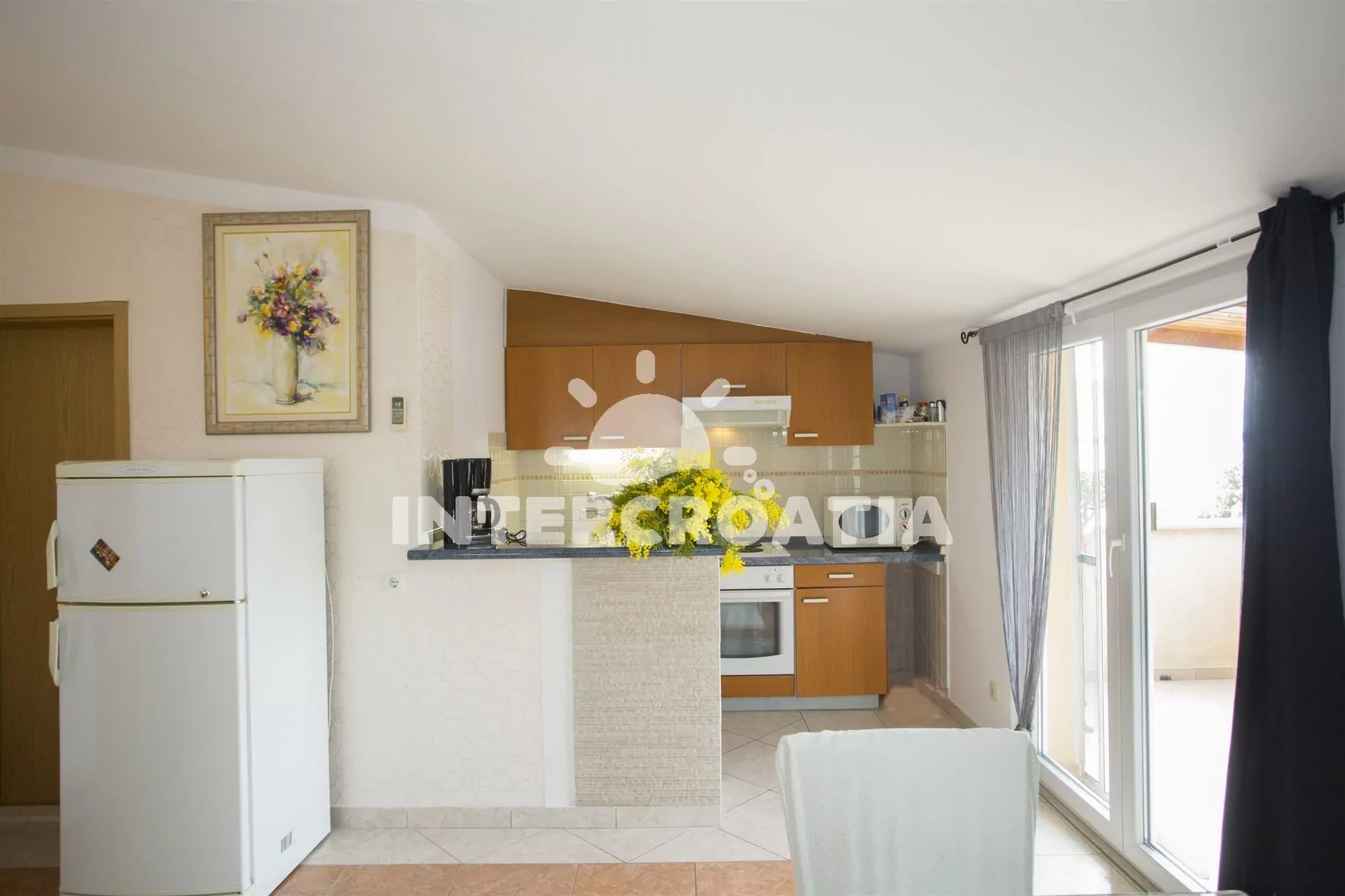 Podkrovní apartmán (70 m2) s terasou a výhledem na moře. Apartmán má 2 ložnice, 2 koupelny a je vhodný pro 4 až 6 osob. Obývací pokoj je spojený s kuchyní. Kuchyňská linka je vybavena varnou deskou,…
