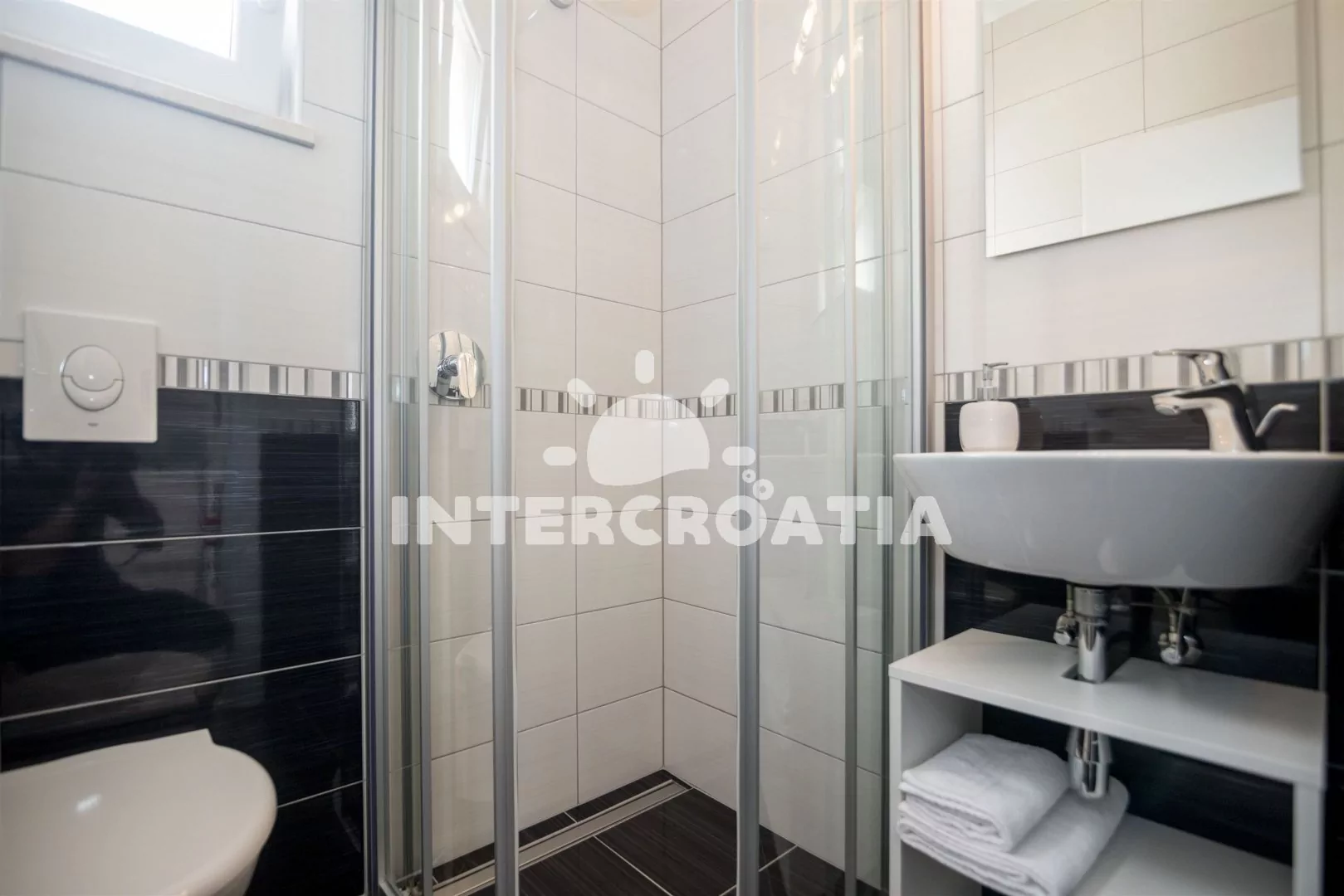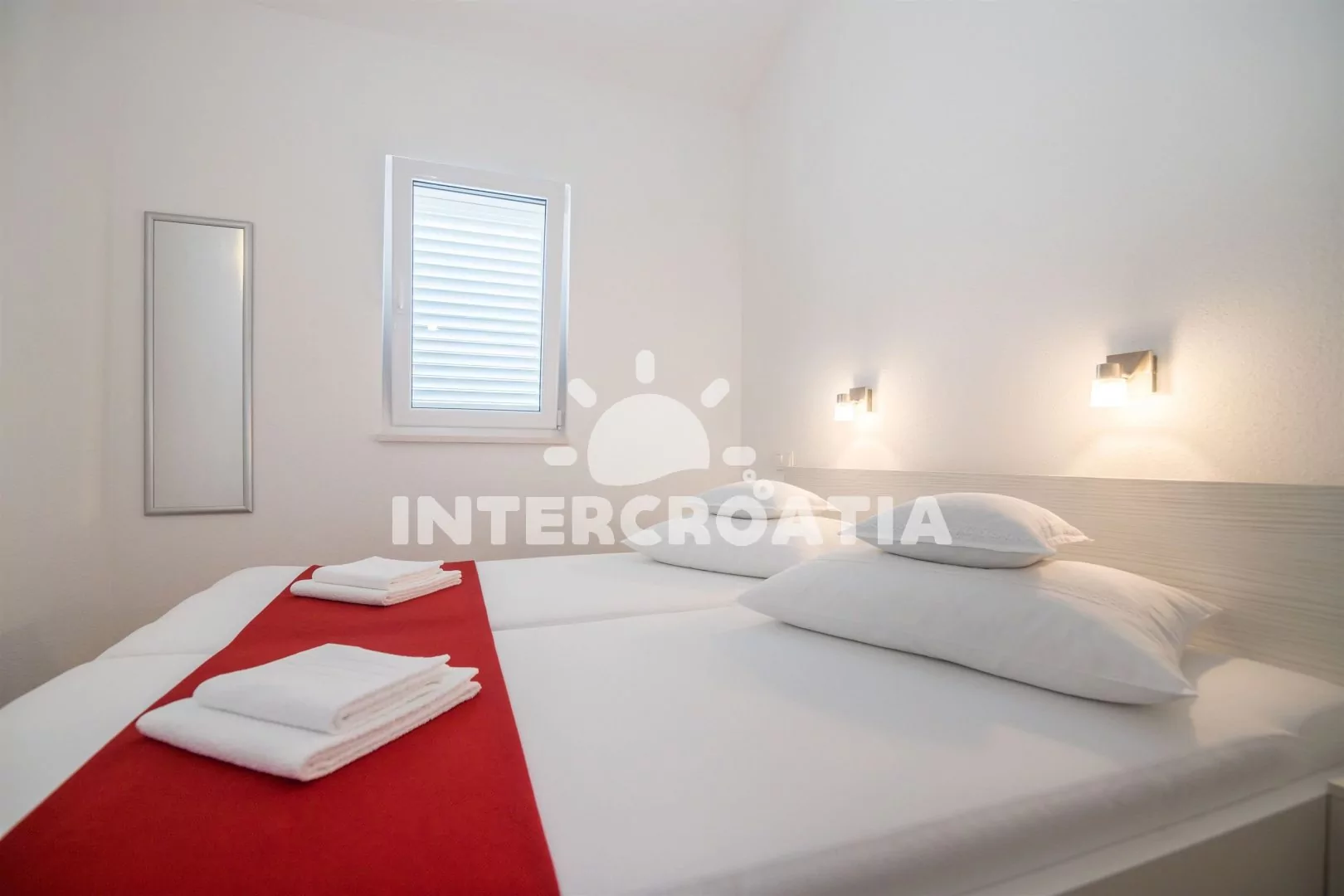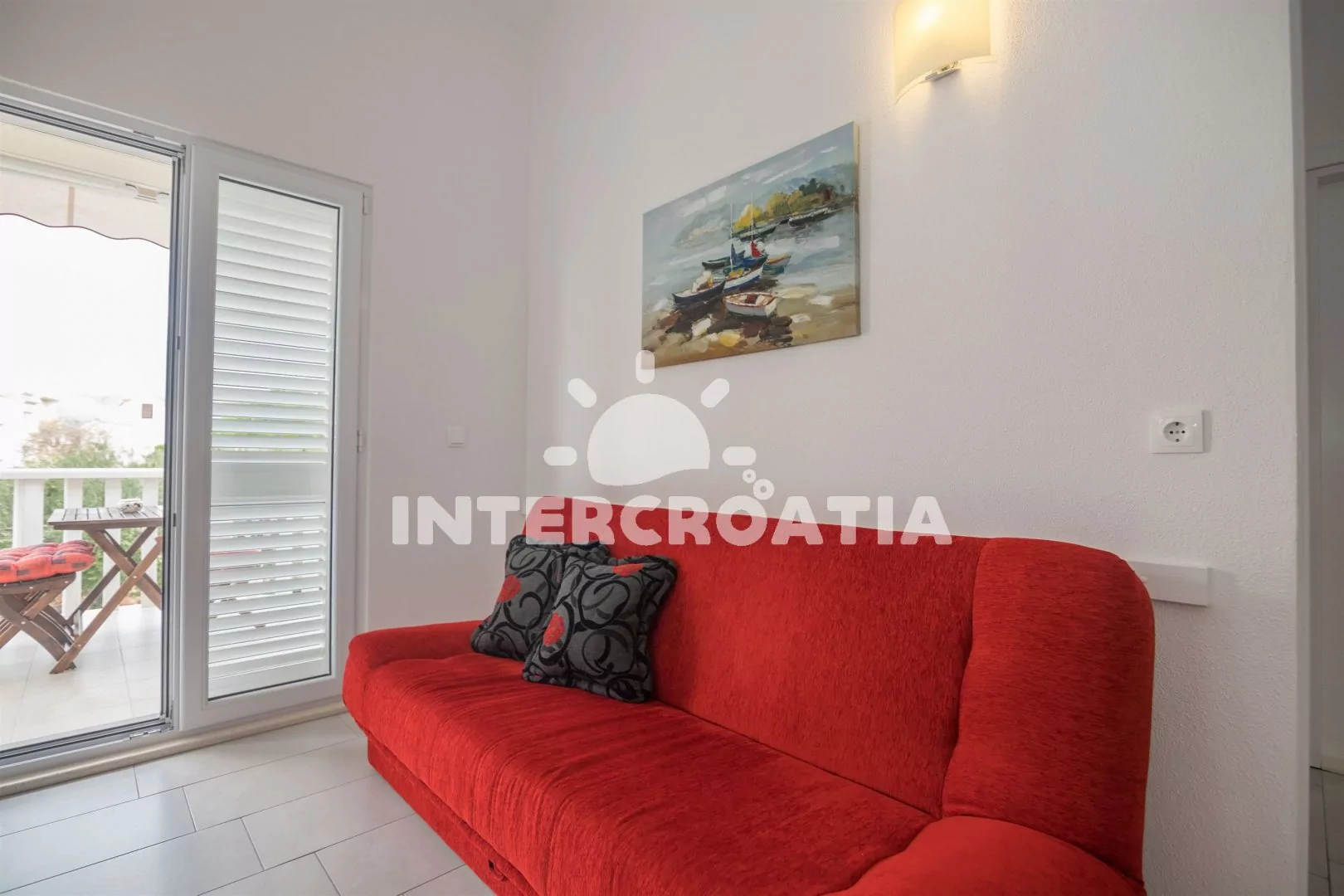 Velmi dobře umístěný dům v klidné ulici s výhledem na moře. Dům se nachází pouze do 100 m pěší chůzí od moře a nádherné oblázkové pláže "Copacabana". Dům nabízí ubytování ve 4 moderně zařízených a klimatizovaných apartmánech, s lodžiemi a venkovním posezením. K dispozici je společná terasa s pergolou, posezením a zděným grilem. U domu vlastní parkoviště pro automobily.