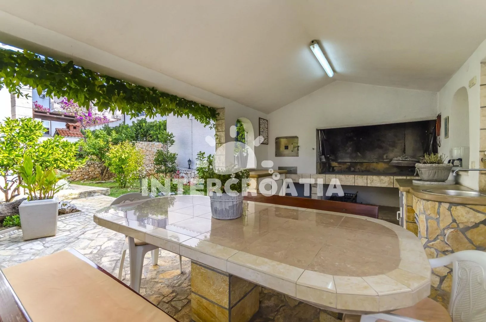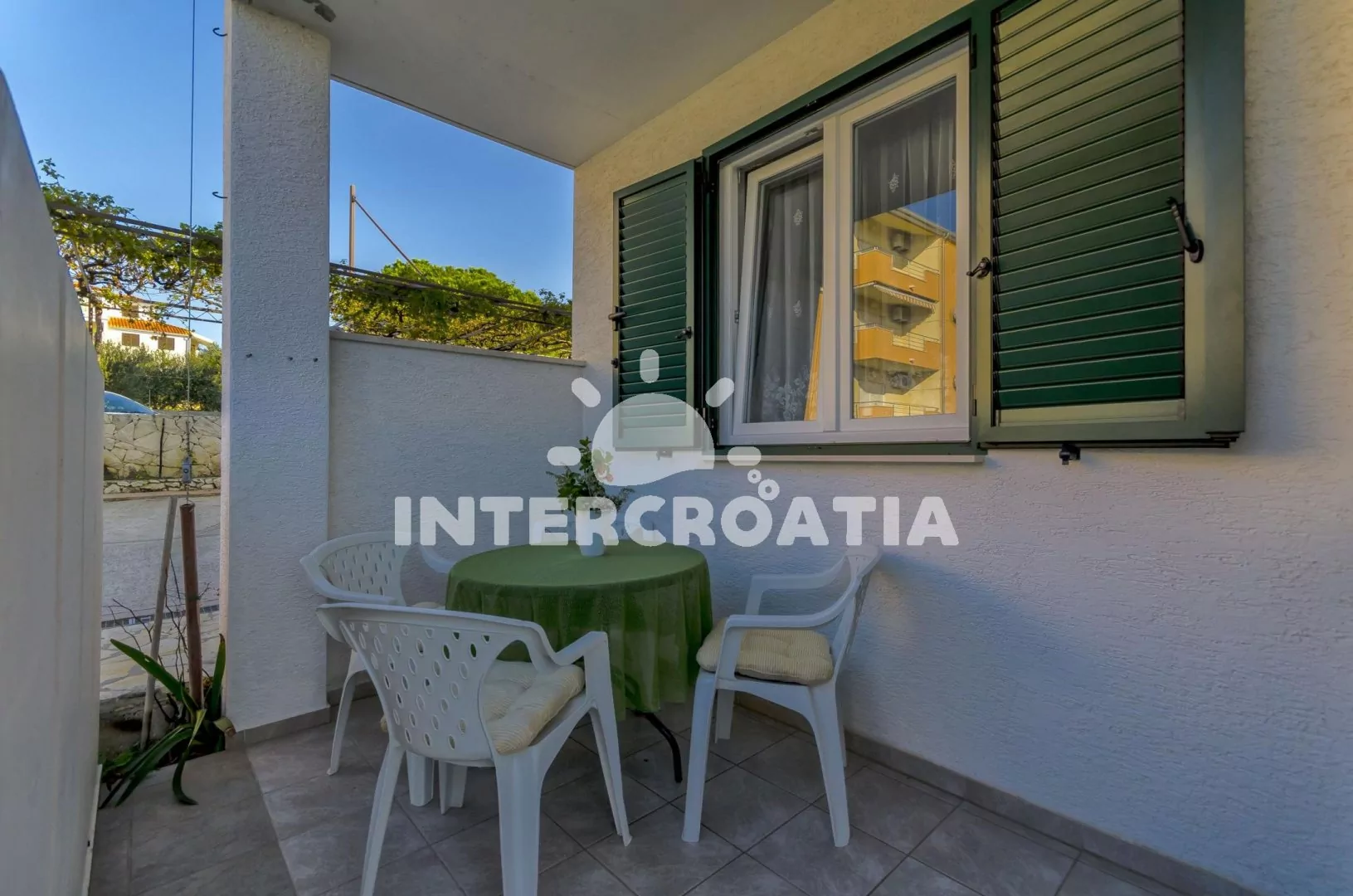 Samostatně stojící apartmánový dům v klidné lokalitě se nachází pouze 120 m pěší chůzí od moře a betonové pláže, velká oblázková pláž Copacabana je 1,8 km pěší chůzí od objektu. Dům nabízí ubytování v soukromých a klimatizovaných apartmánech s lodžiemi. K dispozici je společná zahrada s pergolou, terasou, posezením a zděným grilem. Parkovací místa pro automobily jsou přímo u domu, pod přístřeškem pokrytým zelení.