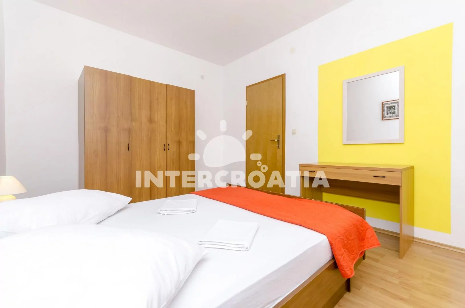 Okrug Gornji je ideální volbou pro turisty, kteří plánují dovolenou v klidnější lokalitě, ale nechtějí přijít o možnost kulturního vyžití. V blízkém Trogiru se celé léto konají různé zábavné programy. Po 120 m od apartmánové domu přijdete k moři a betonové pláži. Nejvíce spokojení budou turisté, kteří preferují klidné prostředí. Průzračné čisté moře je zárukou skvělého koupání a šnorchlování. V případě že se rádi schováte do stínu doporučujeme vám si přinést slunečník. Pláž je zastíněná borovicemi jen částečně. V docházkové vzdálenosti můžete posedět v plážovém baru. Rodiny s dětmi se mohou vydat na vzdálenější oblázkovou pláž Bočići, ta leží 1,8 km od apartmánu. Pláž má pozvolný přístup do moře. Zájemci si mohou užít zábavu při zapůjčení vodních šlapadel. Pro děti jsou také zajímavé nafukovací atrakce přímo na moři. Pokud chcete více klidu můžete si najít místo k ležení dále od pláže na kamenných plochách. Na pobřeží je k dispozici bufet s menším občerstvením. Krásné koupání zažijete i 2 km dlouhé oblázkové pláži Copacabana, která je vzdálená přibližně 2,2 km od ubytování. Pro Okrug Gornji jsou z historického hlediska typické kostely a zbytky šlechtických venkovských usedlostí. Než se vydáte do centra Trogiru nenechte si ujít lidovou událost Rybářskou noc. Centrum Trogiru hrdě patří na seznam kulturního dědictví Unesco. Vašemu obdivu neuniknou katedrála sv. Vavřince, pevnost Kamerlengo, Mořská brána, palác Ćipiko a obranná věž sv. Marka. V letních měsících se samozřejmě koná různorodé kulturní dění. Máte rádi výlety do přírody? Pokud ano, naplánujte si výlet do Přírodního parku Vranské jezero a do Národního parku Krka. Bohaté společenské akce, výborná gastronomie a památky neodmyslitelně patří k přednostem Splitu a Šibeniku.