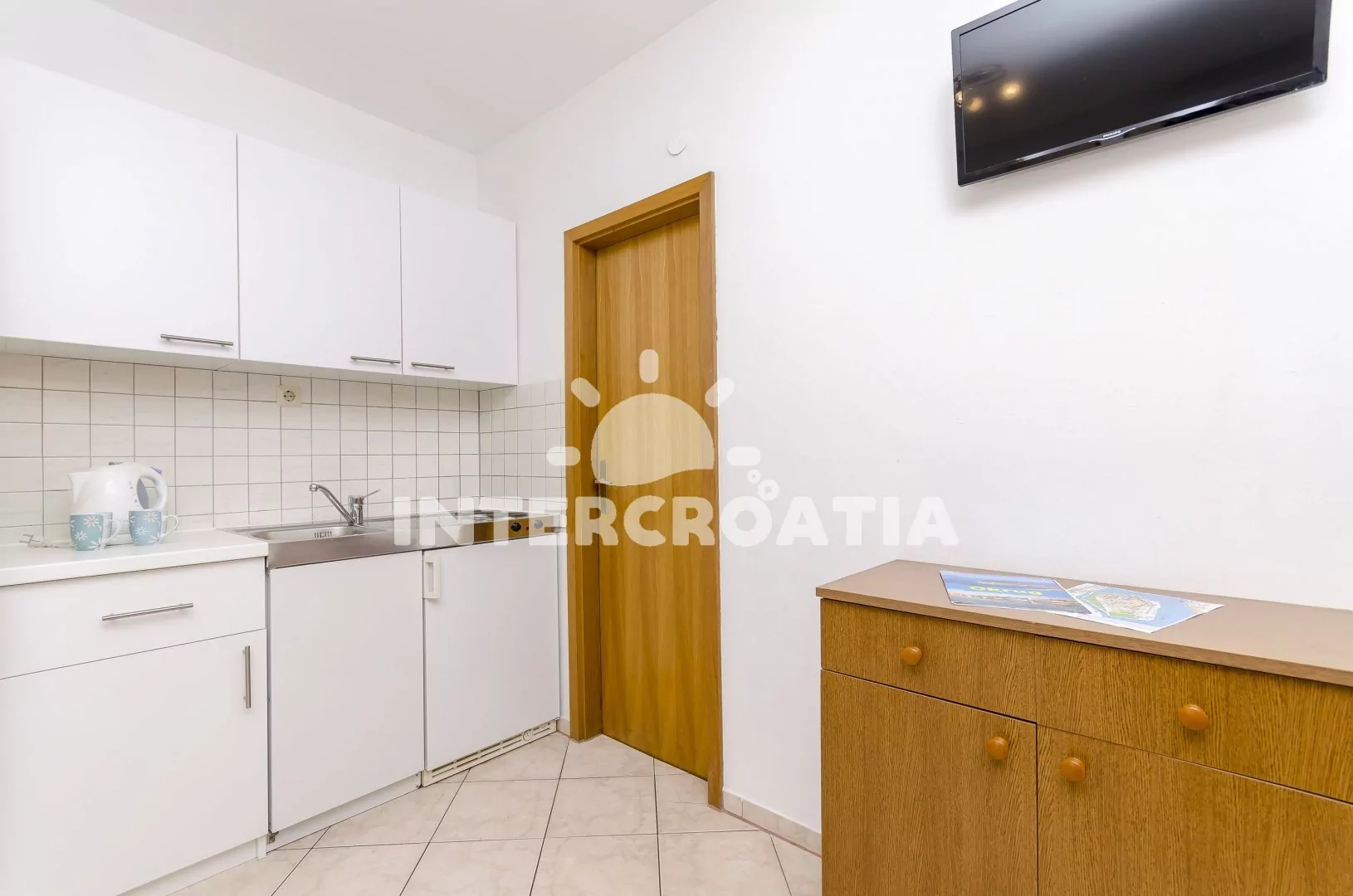 Vzdálenosti: Moře a betonová pláž 120 m, oblázková pláž 1,8 km, bar 150 m, supermarket 200 m, restaurace 300 m, potápění, veřejná doprava 500 m, centrum, lékárna, ambulance, směnárna, banka, pošta, diskotéka 1 km, muzeum 4 km, čerpací stanice 5 km, letiště 7 km, trajekt 30 km.