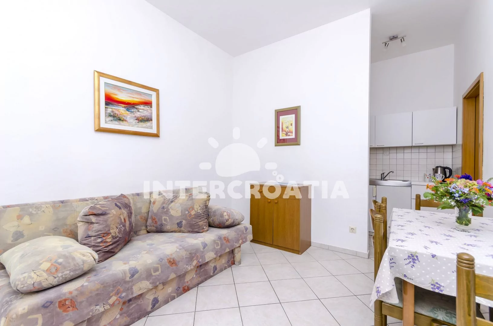 Vzdálenosti: Moře a betonová pláž 120 m, oblázková pláž 1,8 km, bar 150 m, supermarket 200 m, restaurace 300 m, potápění, veřejná doprava 500 m, centrum, lékárna, ambulance, směnárna, banka, pošta, diskotéka 1 km, muzeum 4 km, čerpací stanice 5 km, letiště 7 km, trajekt 30 km.
