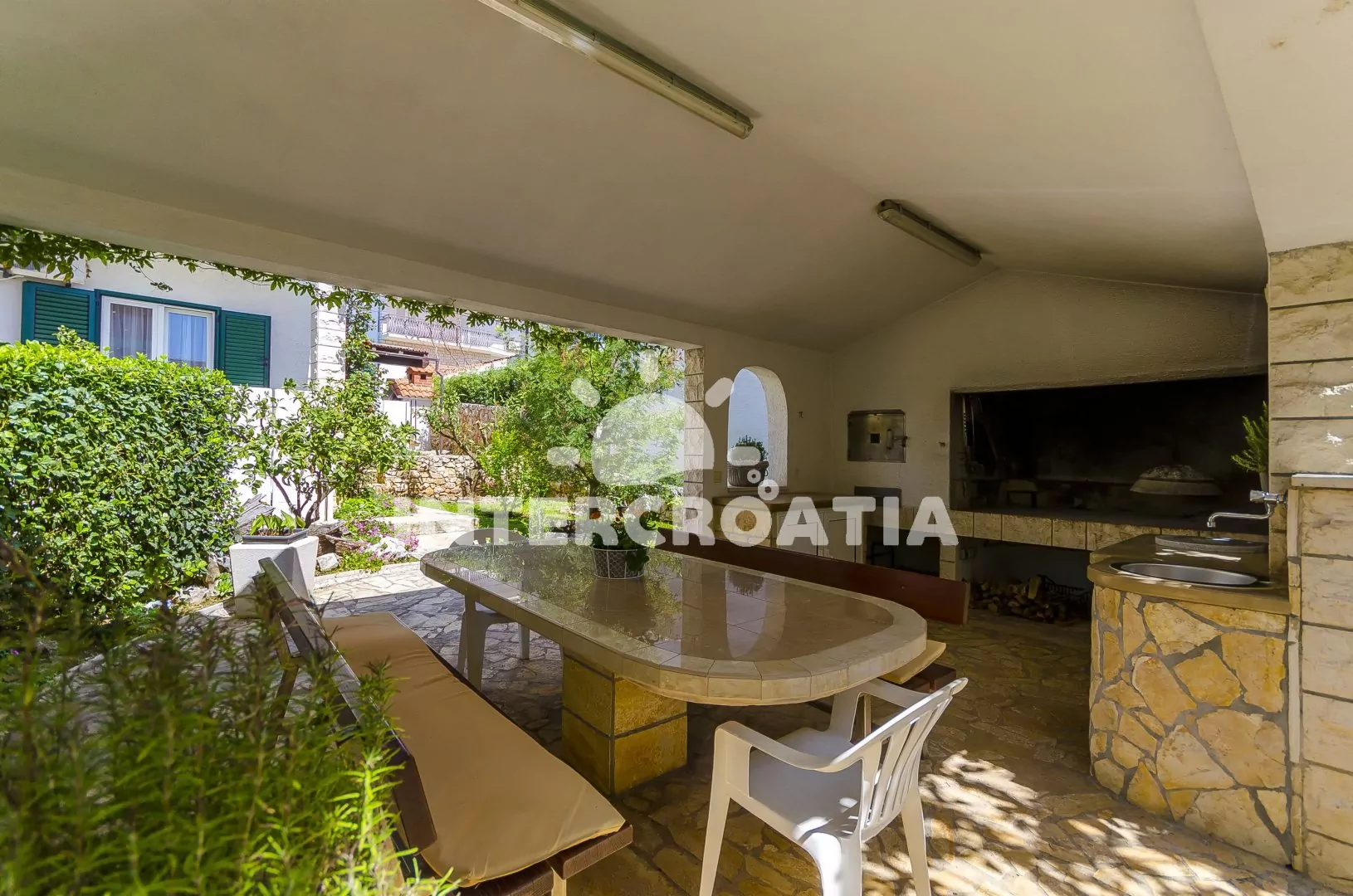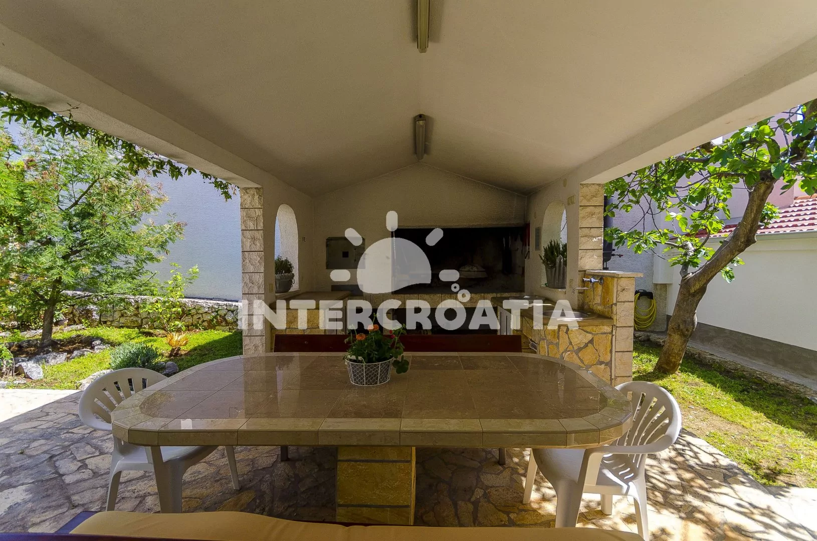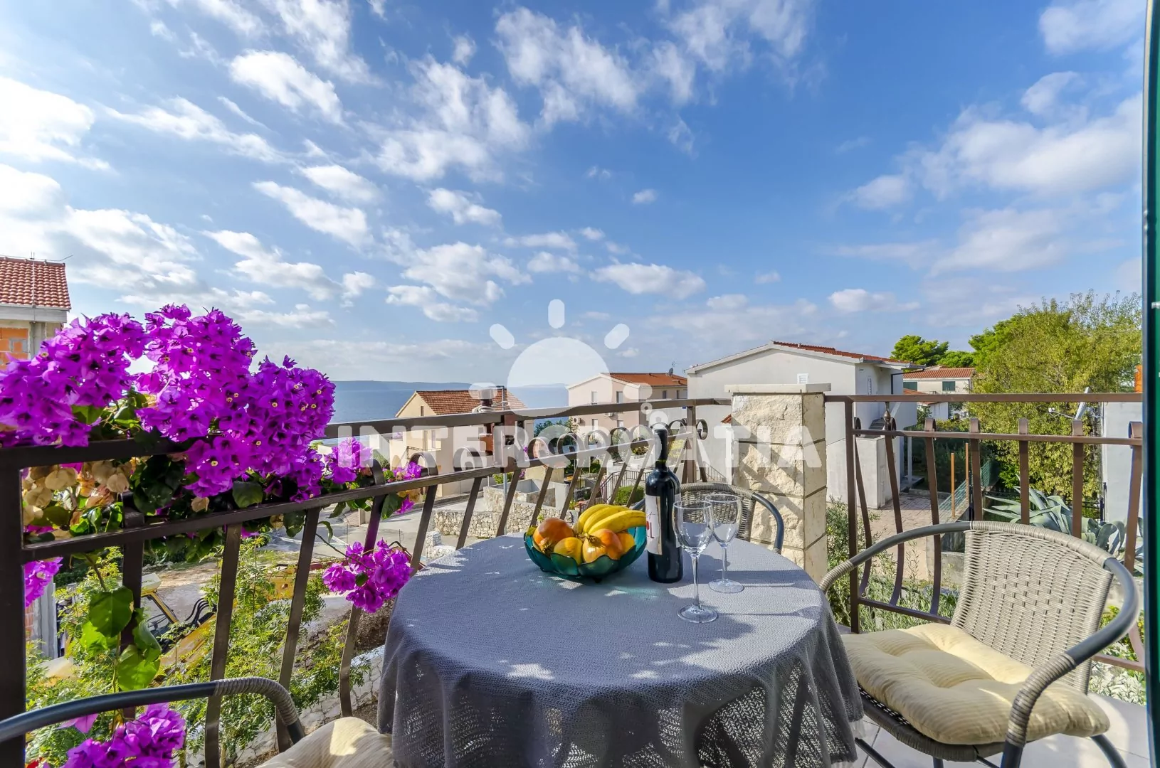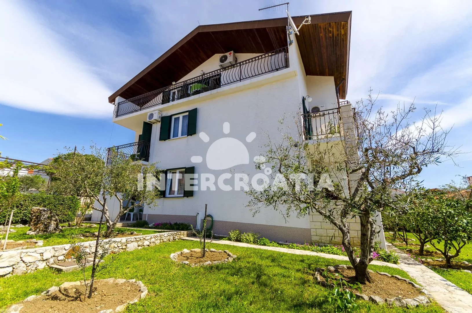 Samostatně stojící apartmánový dům v klidné lokalitě se nachází pouze 120 m pěší chůzí od moře a betonové pláže, velká oblázková pláž Copacabana je 1,8 km pěší chůzí od objektu. Dům nabízí ubytování v soukromých a klimatizovaných apartmánech s lodžiemi. K dispozici je společná zahrada s pergolou, terasou, posezením a zděným grilem. Parkovací místa pro automobily jsou přímo u domu, pod přístřeškem pokrytým zelení.