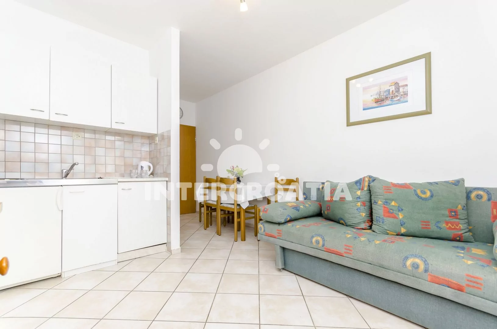 Vzdálenosti: Moře a betonová pláž 120 m, oblázková pláž 1,8 km, bar 150 m, supermarket 200 m, restaurace 300 m, potápění, veřejná doprava 500 m, centrum, lékárna, ambulance, směnárna, banka, pošta, diskotéka 1 km, muzeum 4 km, čerpací stanice 5 km, letiště 7 km, trajekt 30 km.