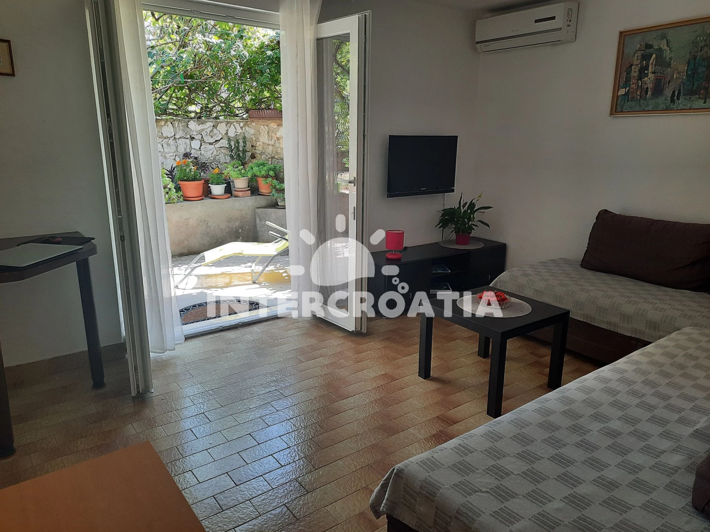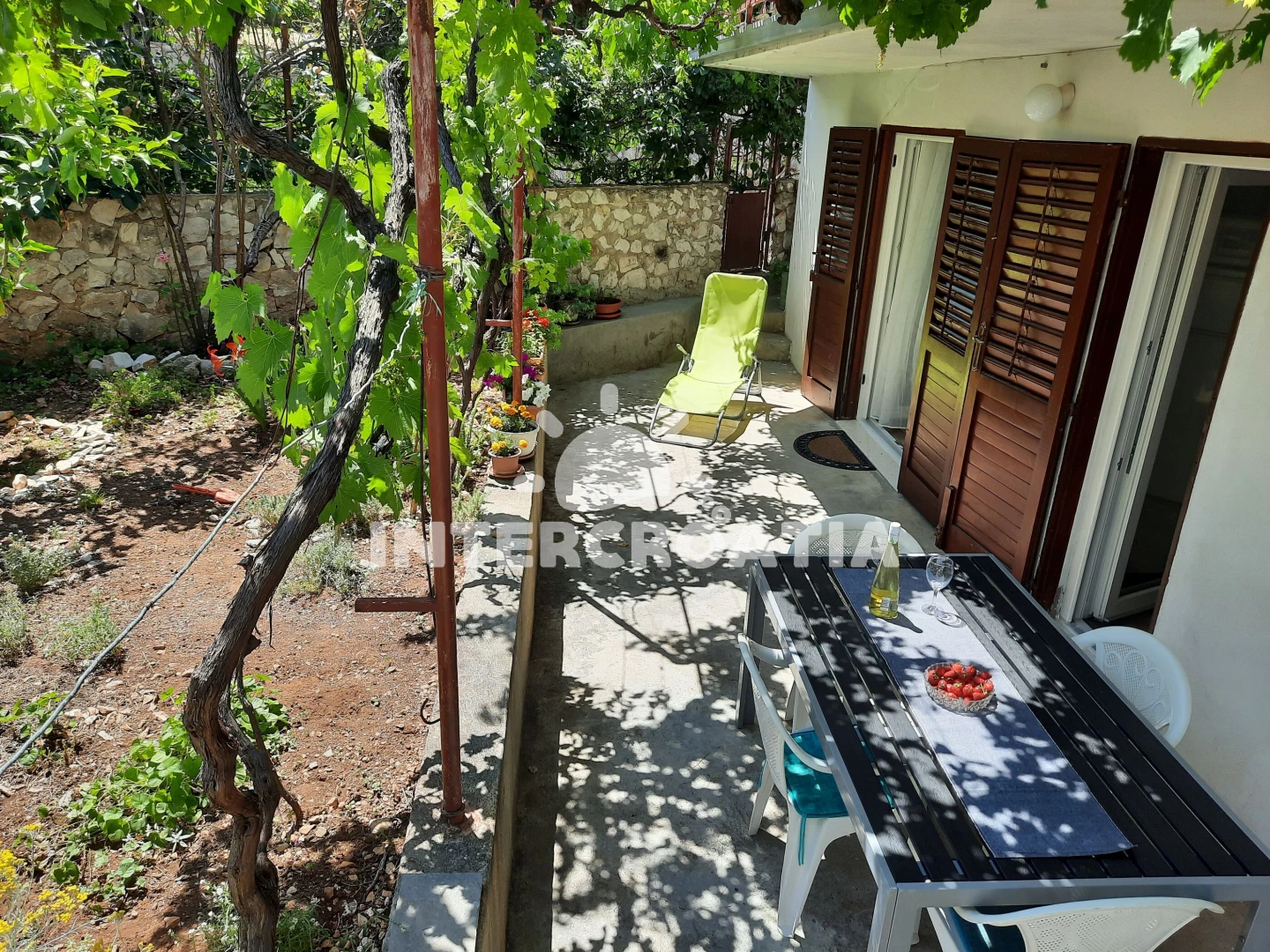 Apartmán se nachází 80 m od moře a pláže. Pláž je písčitá, skalnatá, oblázková, větší kamení a betonové desky. U objektu je k dispozici společná zahrada s posezením a grilem. Parkování je před domem.