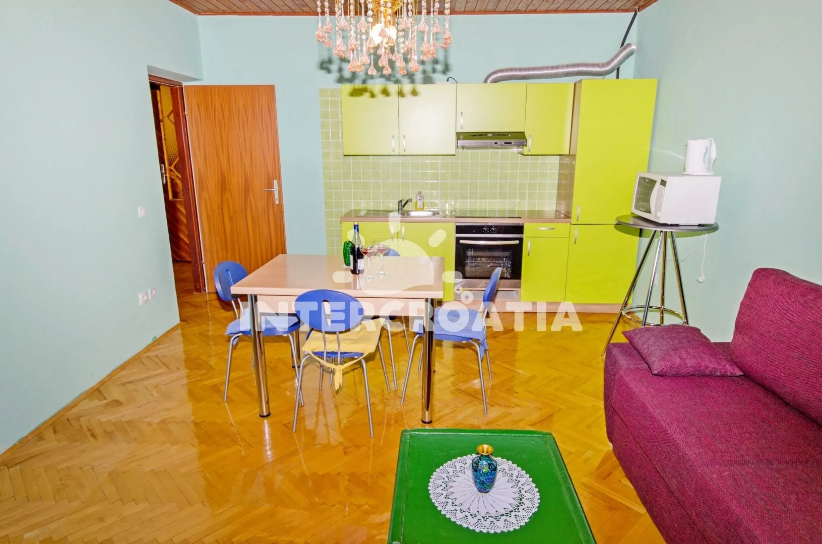 Apartmán (70 m2) s terasou, venkovním posezením a výhledem na moře se nachází ve 2. patře domu. Apartmán má 2 ložnice a je vhodný pro 4 až 6 osob. Obývací pokoj je spojený s kuchyní. Kuchyňská linka…