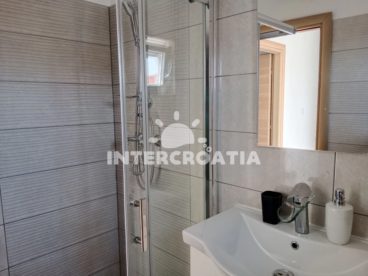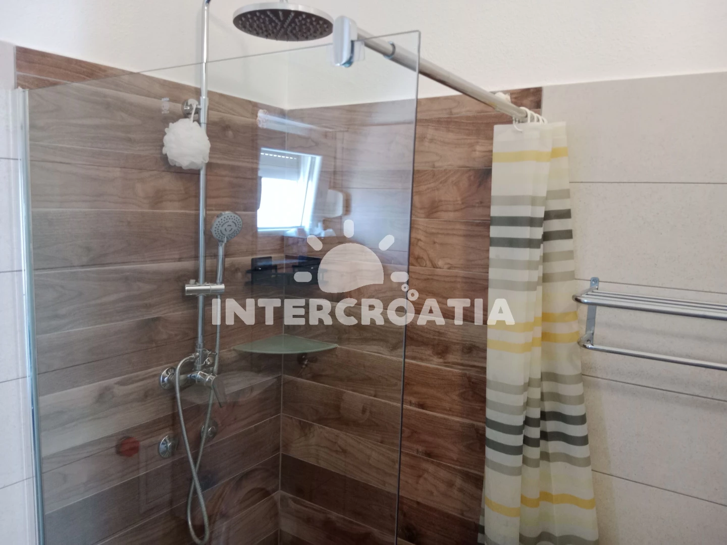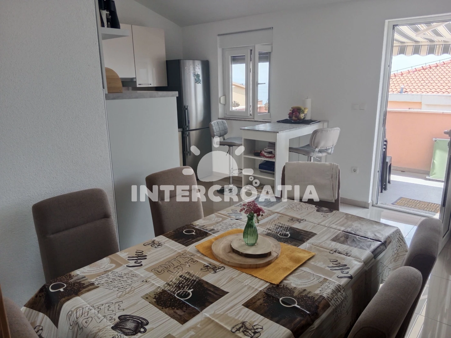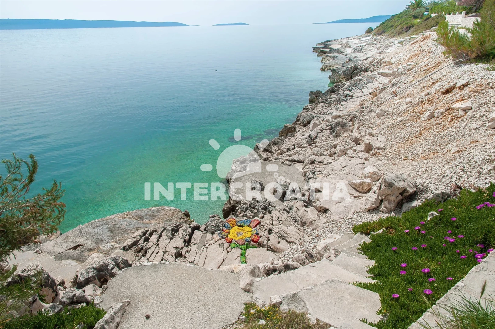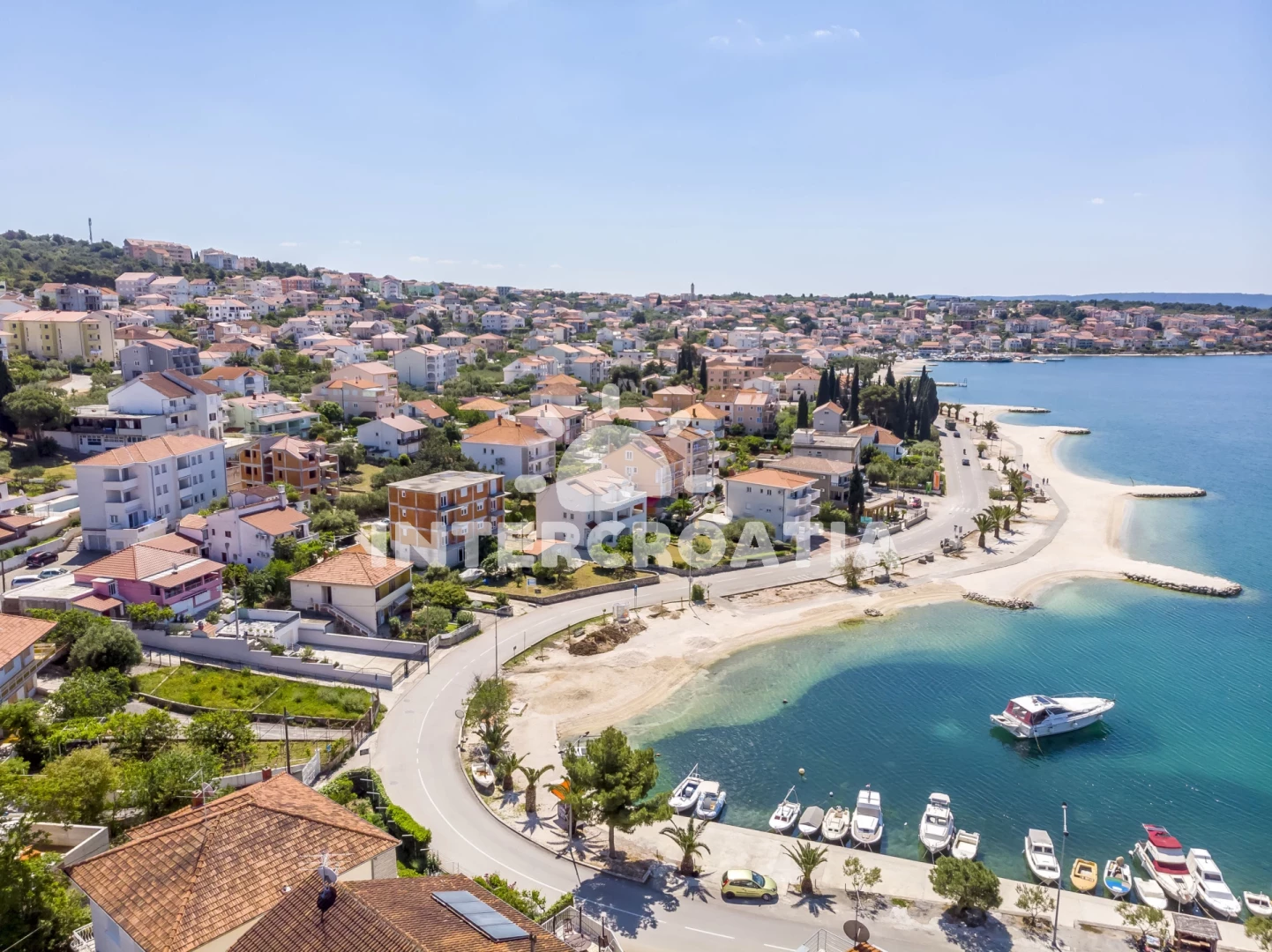 Vzdálenosti: Moře a oblázková-betonová pláž je 200 m, restaurace a bar 200 m, obchod s potravinami 350 m, veřejná doprava 200 m, centrum města 800 m, ambulance, lékárna, potápění a půjčovna motorových člunů 1 km, tenisové kurty 1,5 km, půjčovna cyklistických kol 2 km, diskotéka, muzeum, pošta a banka 4 km, přístav 3 km, směnárna 1,5 km, čerpací stanice 40 km, park Plitvice 50 km, trajekt (Trogir) 5 km, letiště (Split) 7 km.