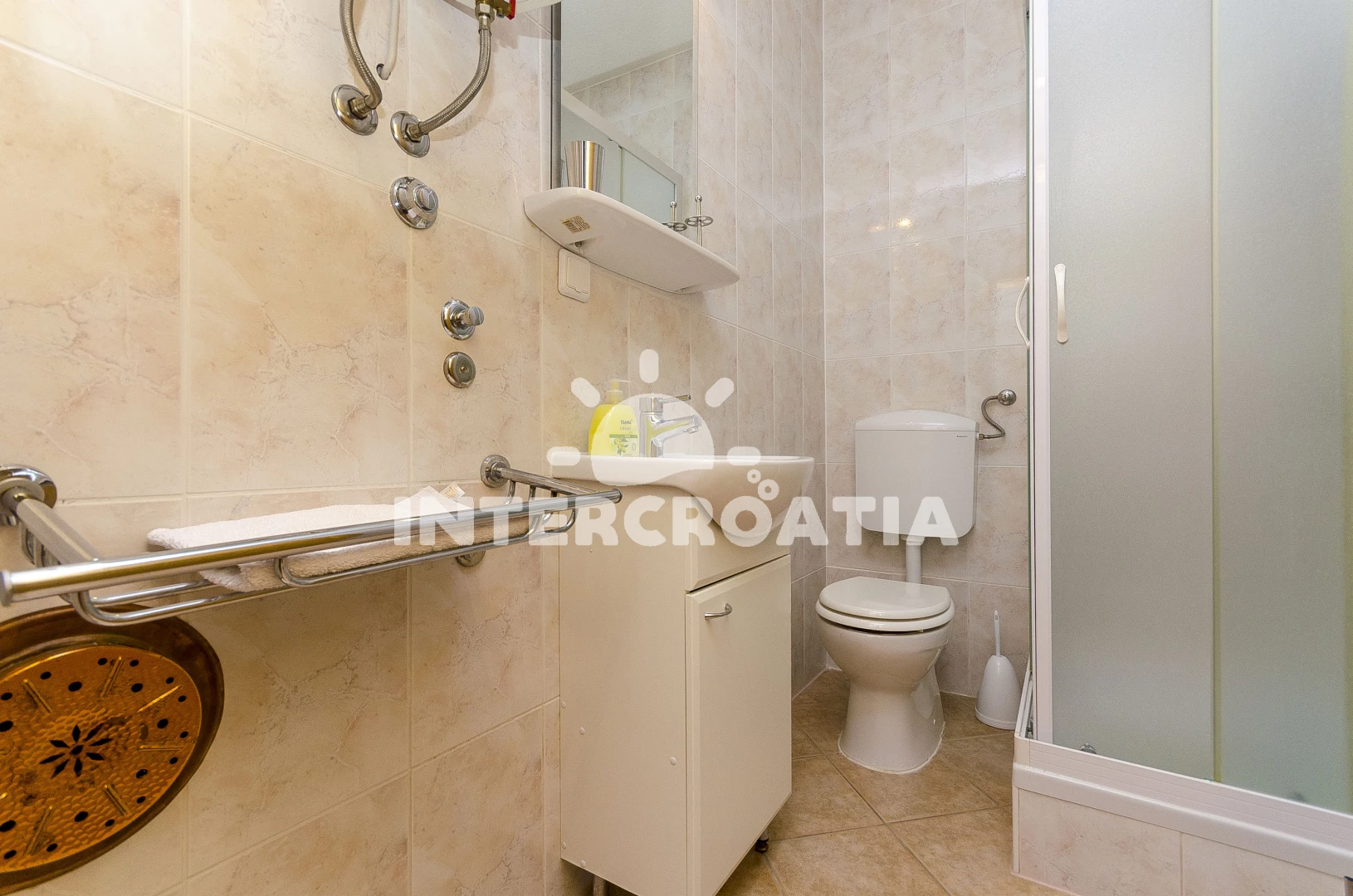 Vzdálenosti: Moře 200 m, pláž 200 m (oblázková a větší kamení), veřejná doprava 100 m, supermarket 200 m, restaurace 200 m, směnárna 500 m, lékárna 1 km, půjčovna kol 1 km, centrum 1 km, pošta 1 km, banka 1 km, bar 1 km, kotviště pro čluny 1 km, ambulance 1 km, marina 5 km, diskotéka 5 km, muzeum 5 km, čerpací stanice 6 km, letiště (Split) 10 km, trajekt (Split) 30 km,