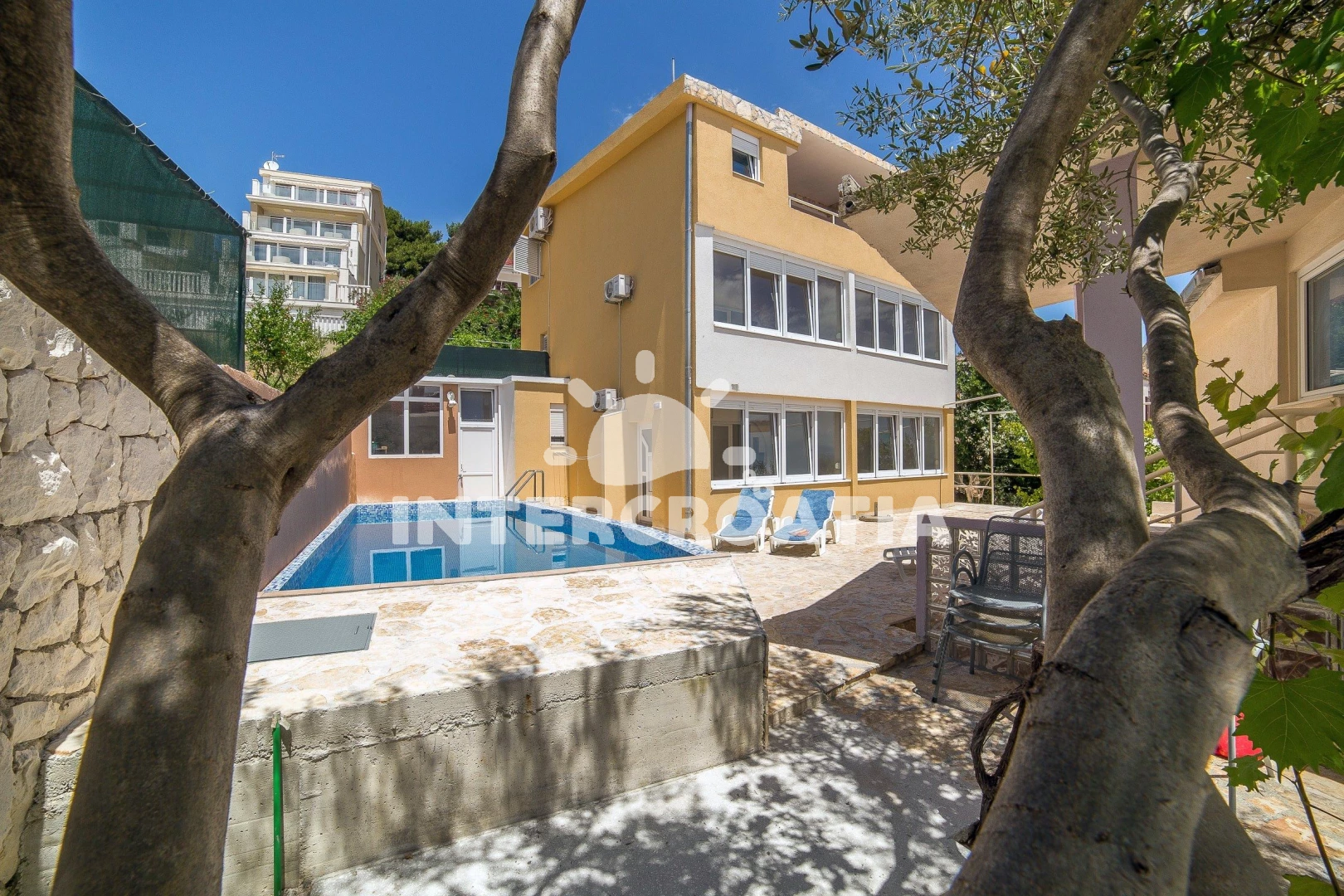 Vzdálenosti: Moře 20 m, pláž 20 m (betonové desky), bar 10 m, restaurace 10 m, supermarket 100 m, centrum 700 m, potápění 700 m, pošta 700 m, směnárna 700 m, ambulance 700 m, lékárna 700 m, banka 4 km, muzeum 4 km, diskotéka 4 km, letiště (Split) 8 km, čerpací stanice 8 km, trajekt (Split) 34,9 km,