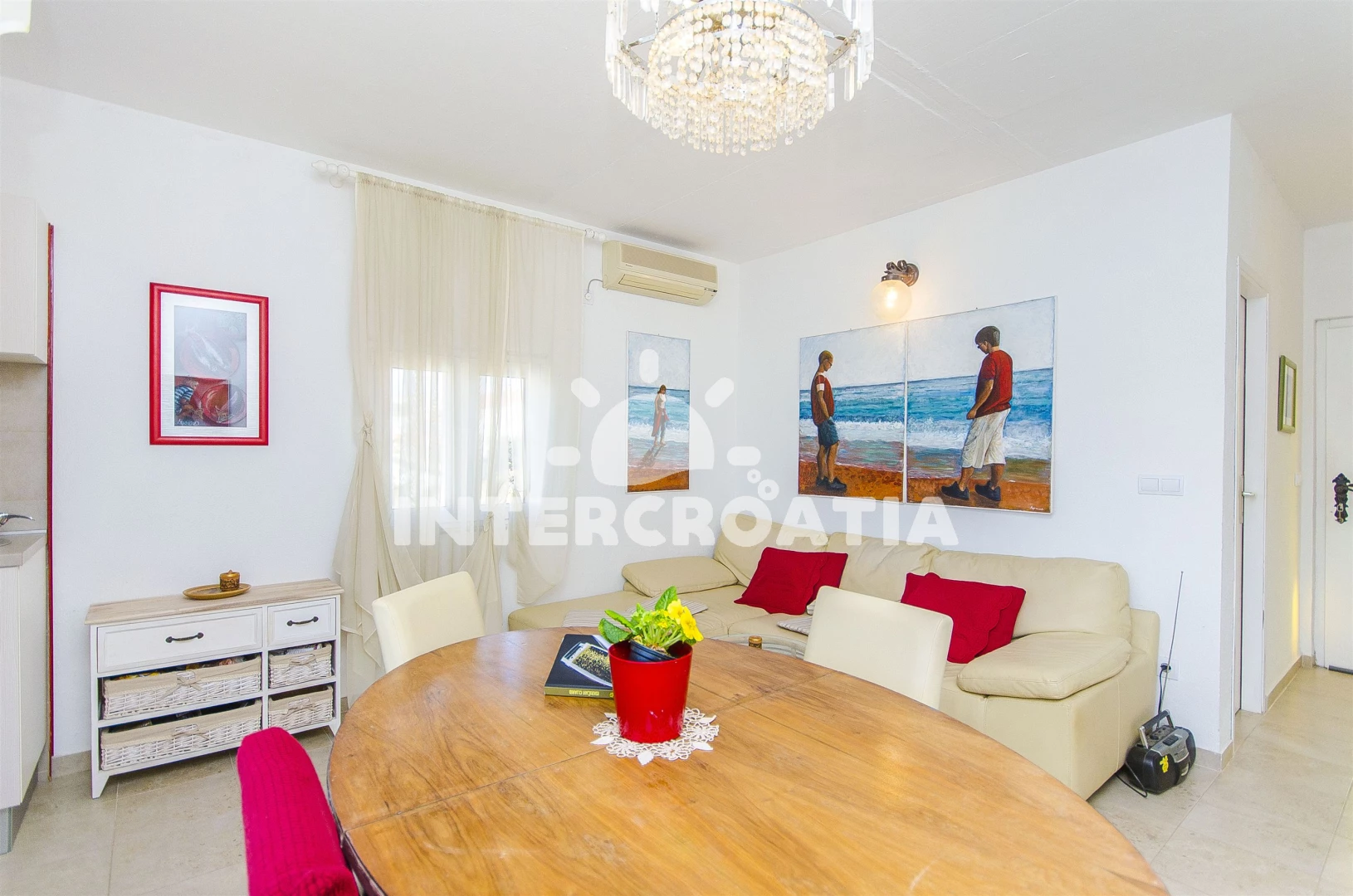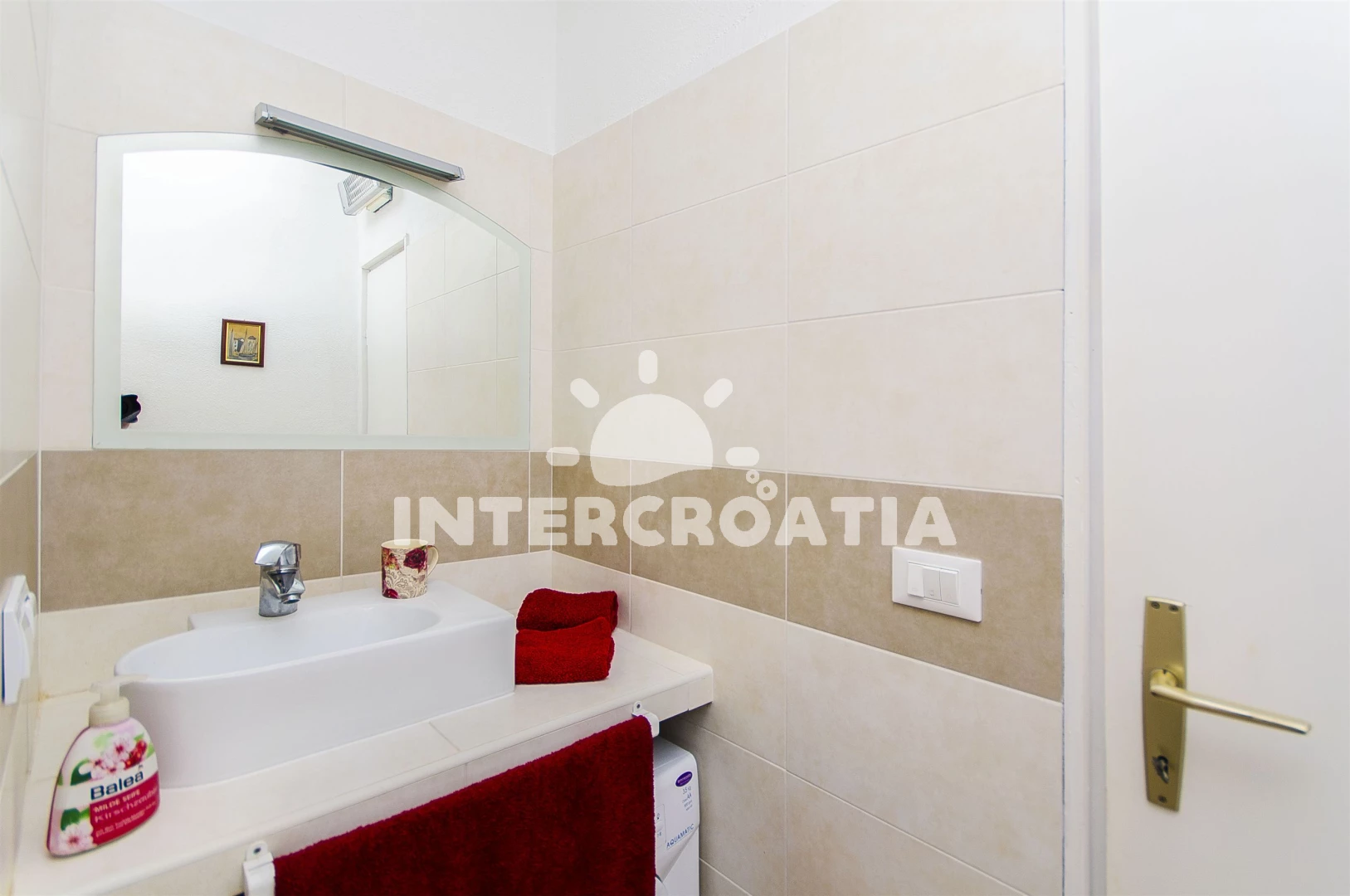 Vzdálenosti: Moře 10 m, pláž 5 m (oblázky), restaurace 100 m, veřejná doprava 100 m, bar 100 m, supermarket 300 m, lékárna 300 m, ambulance 300 m, směnárna 300 m, pošta 300 m, tenisové kurty 1 km, potápění 1 km, půjčovna kol 3 km, diskotéka 3 km, centrum 3 km, muzeum 3 km, banka 3 km, marina 3 km, čerpací stanice 4 km, letiště (Split) 8,0 km, trajekt (Split) 30 km,