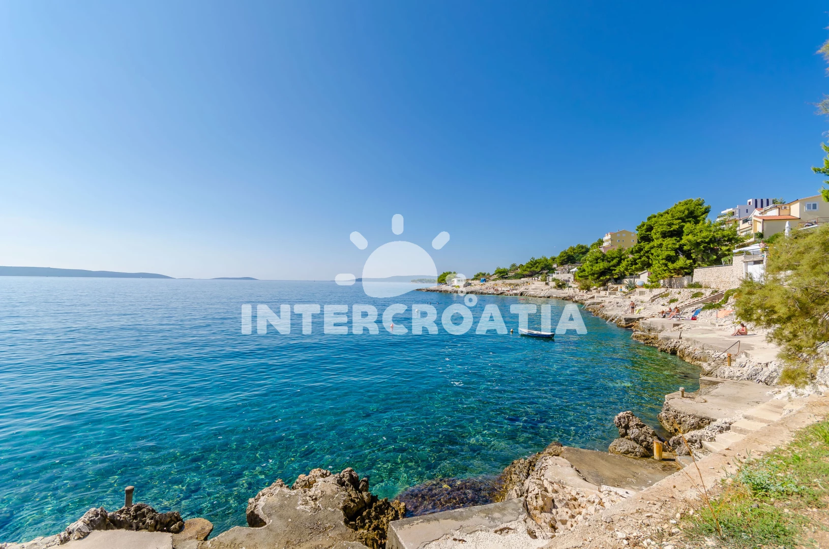 Vzdálenosti: Moře 30 m, pláž 30 m (betonové desky), restaurace 250 m, bar 250 m, tenisové kurty 300 m, supermarket 500 m, pošta 800 m, lékárna 800 m, ambulance 800 m, půjčovna kol 1 km, potápění 1 km, směnárna 1 km, banka 5 km, muzeum 5 km, centrum 5 km, čerpací stanice 7 km, letiště (Split) 9 km, trajekt (Split) 30,0 km,