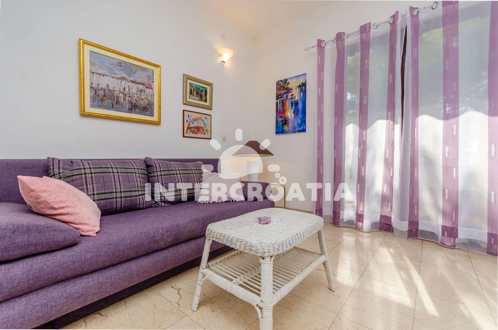 The house has a big tarace with a see view and the distance from the beach is 30 m. You could find here intimate and peaceful atmosphere as there is only one appartment for guests in that house. Old trees will give you the shadow while resting on the tarace. The equipment is not very modern but all the rest is just excellent.