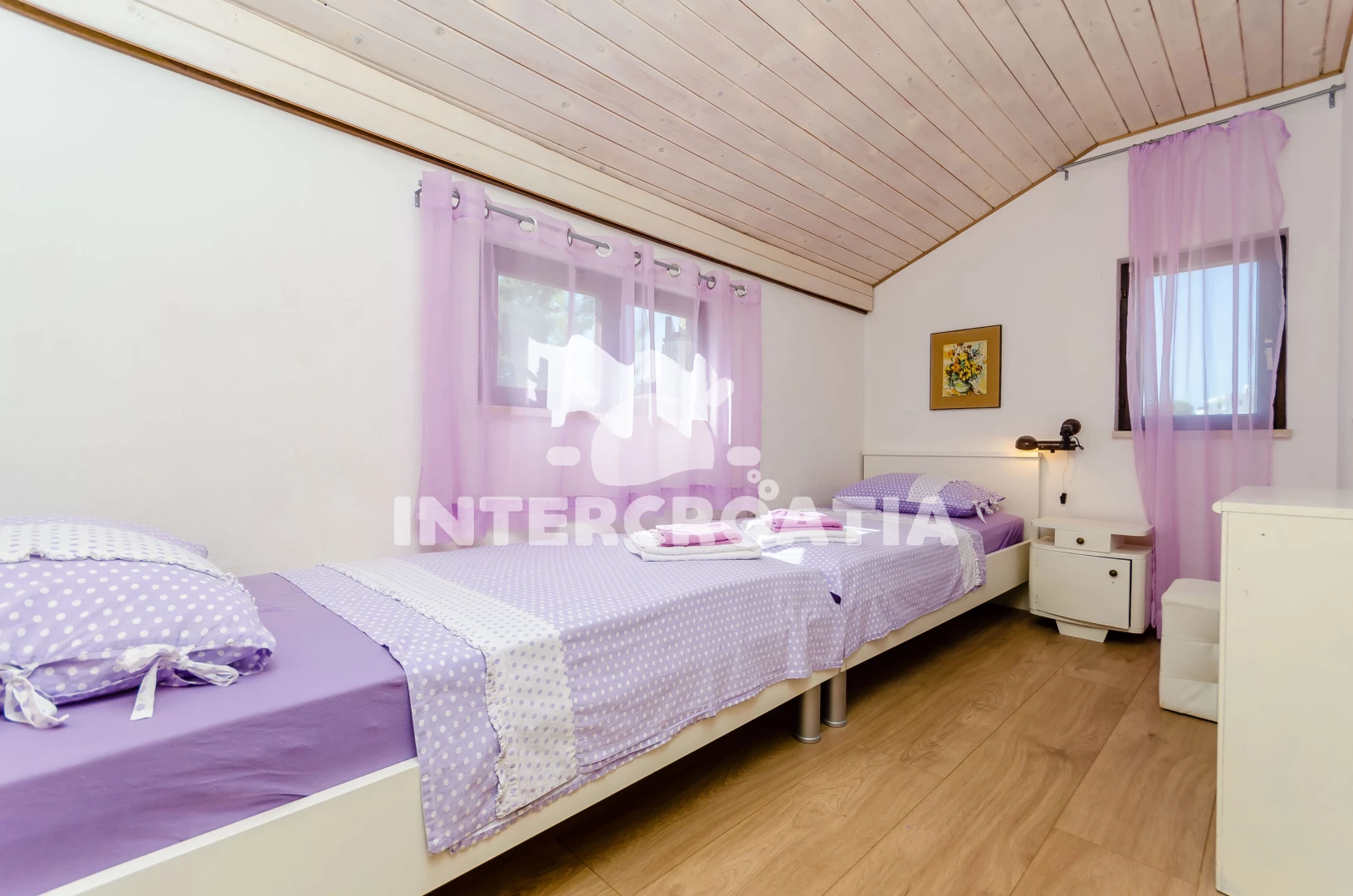 Apartmán (55 m2) s terasou, a výhledem na moře. Nachází se ve dvou patrech objektu. Apartmán má 2 ložnice a je vhodný pro až 5 osob. Kuchyňská linka je vybavena varnou deskou, troubou, kávovarem, myčkou na nádobí, rychlovarnou konvicí, nádobím, lednicí, mrazákem. V obývací místnosti je rozložitelná pohovka (extra lůžko pro 1 osobu). K dispozici televize se satelitním programem, žehlička. První ložnice s dvoulůžkem. Druhá ložnice se 2 jednolůžky. Koupelna se sprchovým koutem, umyvadlem, WC.