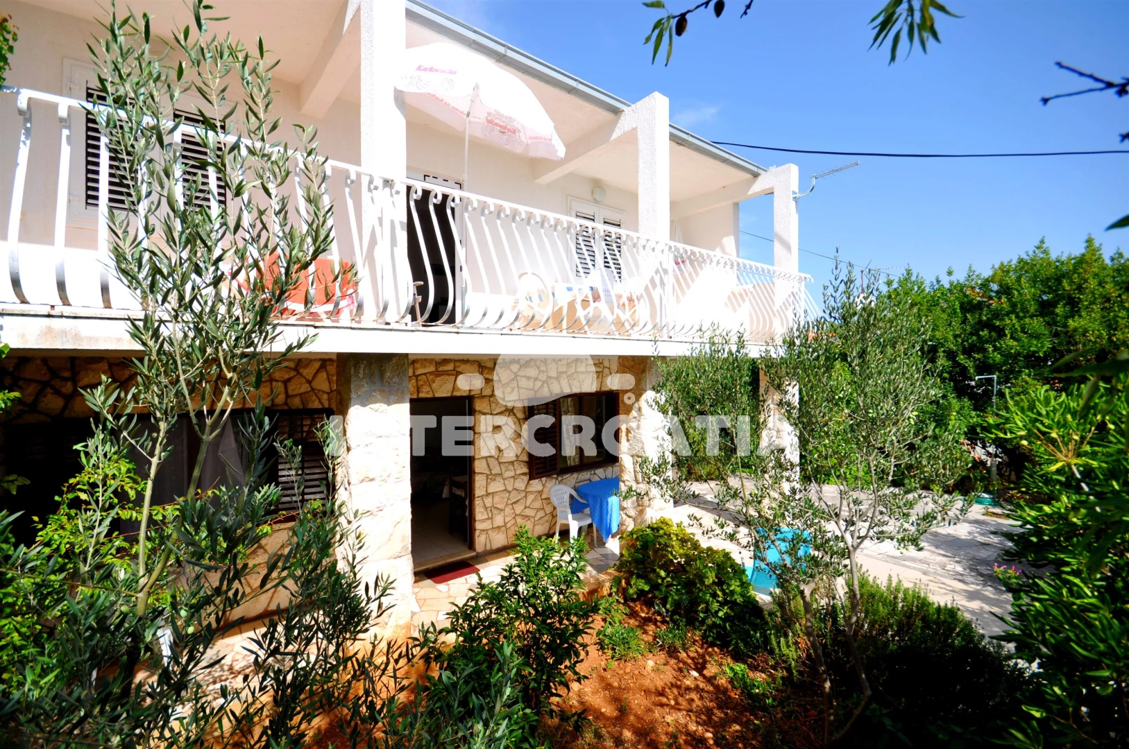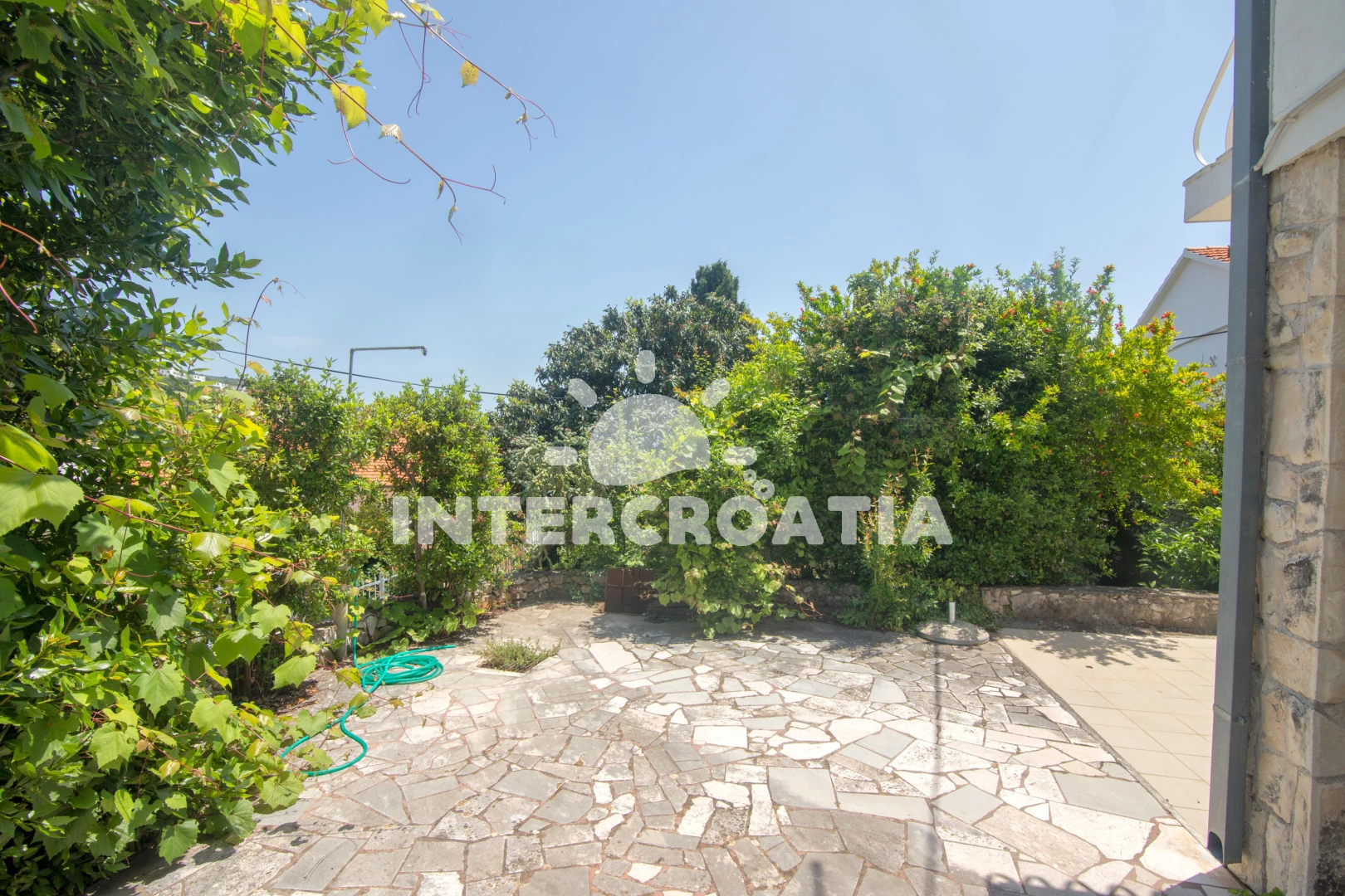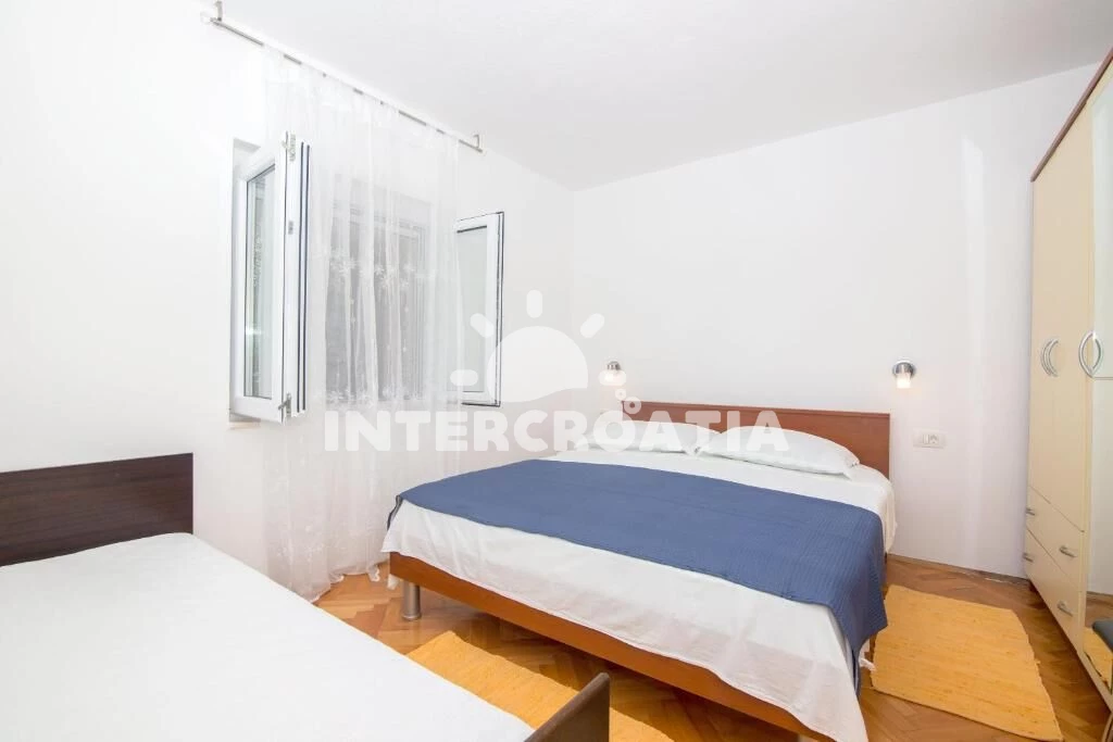 Vzdálenosti: Moře 70 m, pláž 100 m (kamenné a betonové desky), potápění 50 m, půjčovna kol 100 m, bar 100 m, veřejná doprava 500 m, restaurace 800 m, pošta 800 m, centrum 800 m, směnárna 800 m, ambulance 800 m, lékárna 800 m, supermarket 800 m, tenisové kurty 1 km, diskotéka 1,5 km, banka 3 km, muzeum 3 km, marina 3 km, čerpací stanice 4 km, trajekt (Trogir) 8,9 km, letiště (Split) 10 km,