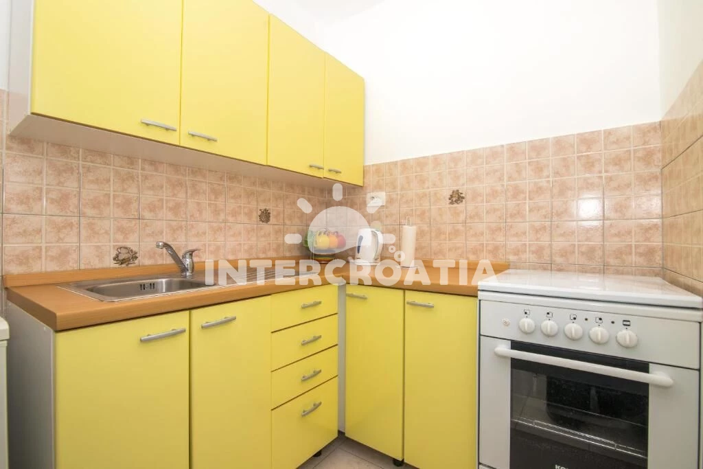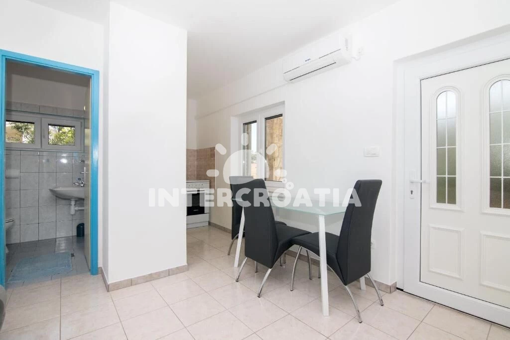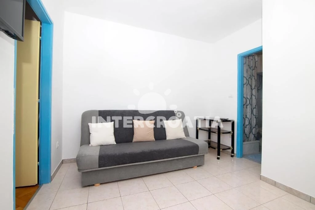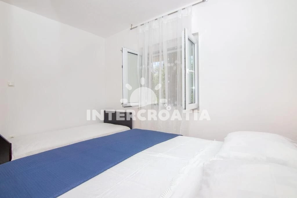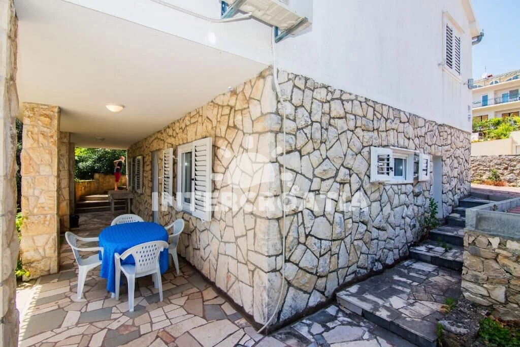 Apartmán se nachází 100 m od moře a pláže. Pláž je kamenné a betonové desky. U objektu je k dispozici společná zahrada s posezením a grilem.