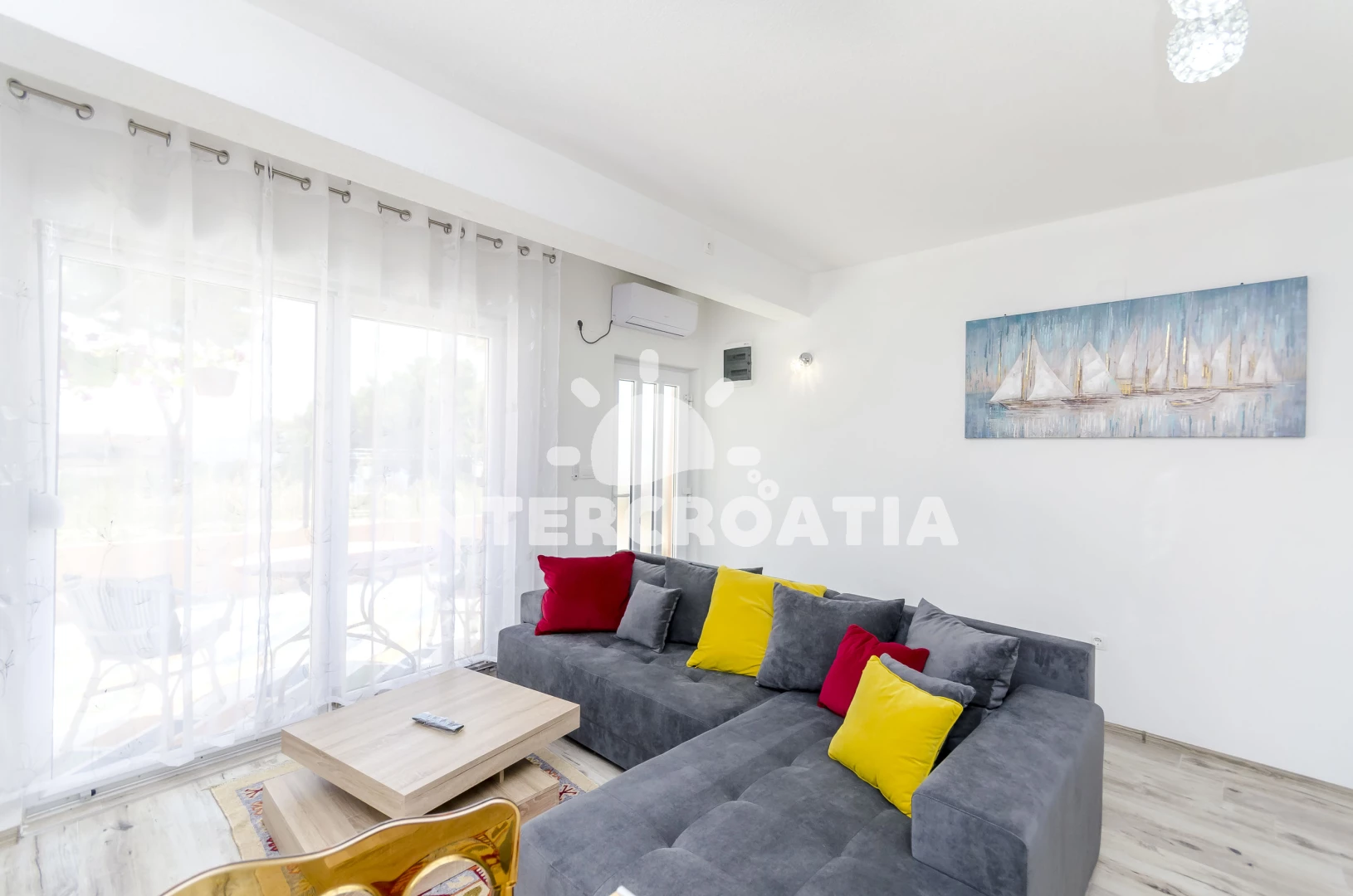 Apartmán se nachází 150 m od moře a pláže. Pláž je betonové desky. Apartmán disponuje bazénem s lehátky pro ubytované hosty. U objektu je k dispozici společná zahrada s posezením a grilem. Parkování je před domem.
