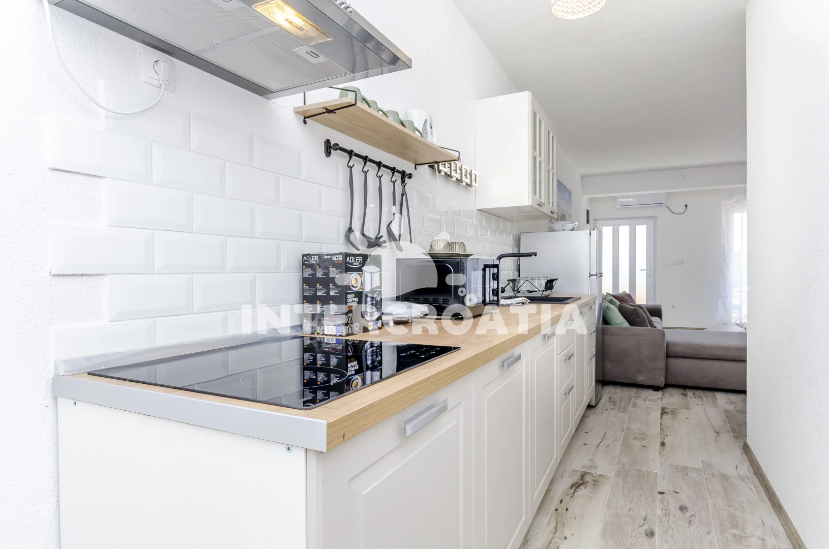 Vzdálenosti: Moře 150 m, pláž 150 m (betonové desky), bar 100 m, supermarket 100 m, restaurace 100 m, lékárna 1 km, muzeum 1 km, ambulance 1 km, banka 1 km, pošta 1 km, směnárna 1 km, centrum 1 km, půjčovna kol 1 km, čerpací stanice 4 km, letiště (Split) 10 km, trajekt (Split) 30 km,
