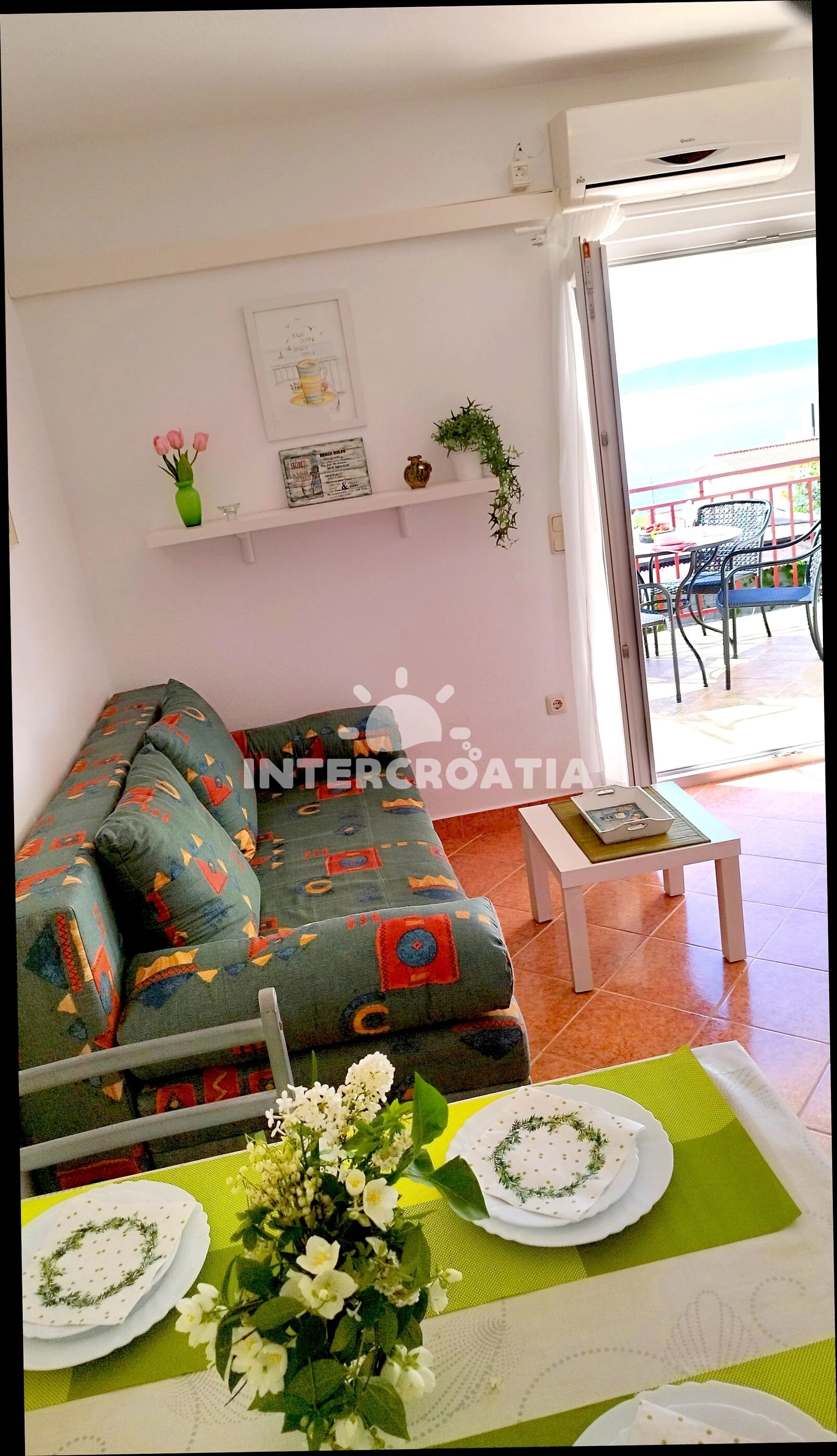 Vzdálenosti: Moře 150 m, pláž 200 m (kamenné a betonové desky), supermarket 300 m, veřejná doprava 1 km, bar 1,1 km, lékárna 1,1 km, ambulance 1,1 km, směnárna 1,1 km, restaurace 1,1 km, pošta 1,1 km, centrum 1,2 km, půjčovna kol 1,5 km, půjčovna motorových člunů 1,5 km, banka 4 km, diskotéka 4 km, muzeum 5 km, čerpací stanice 5 km, letiště (Split) 10,0 km, trajekt (Split) 35 km,