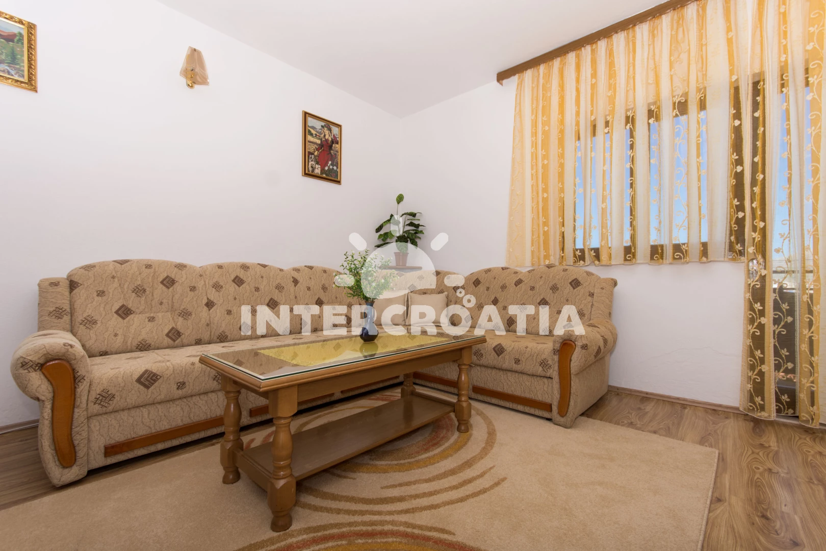 Apartmán (70 m2) s balkonem, a výhledem na moře. Nachází se v 1. patře objektu. Apartmán má 1 ložnici a je vhodný pro až 4 osoby. Kuchyňská linka je vybavena varnou deskou, troubou, rychlovarnou…