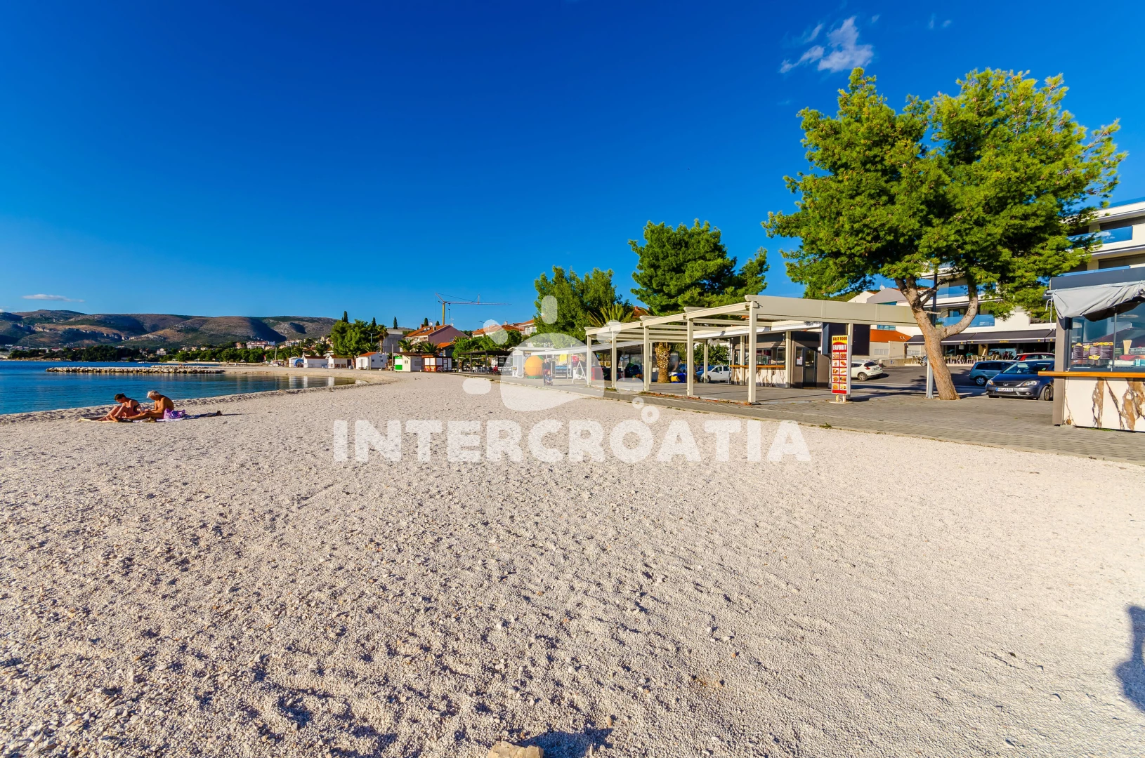 Vzdálenosti: Moře 20 m, pláž 20 m (oblázky), supermarket 20 m, bar 20 m, restaurace 50 m, centrum 200 m, půjčovna kol 300 m, pošta 700 m, lékárna 700 m, směnárna 700 m, ambulance 700 m, banka 3 km, čerpací stanice 3 km, muzeum 3 km, letiště (Split) 7 km, trajekt (Split) 25 km,