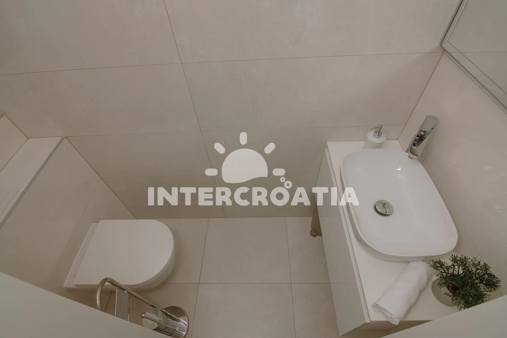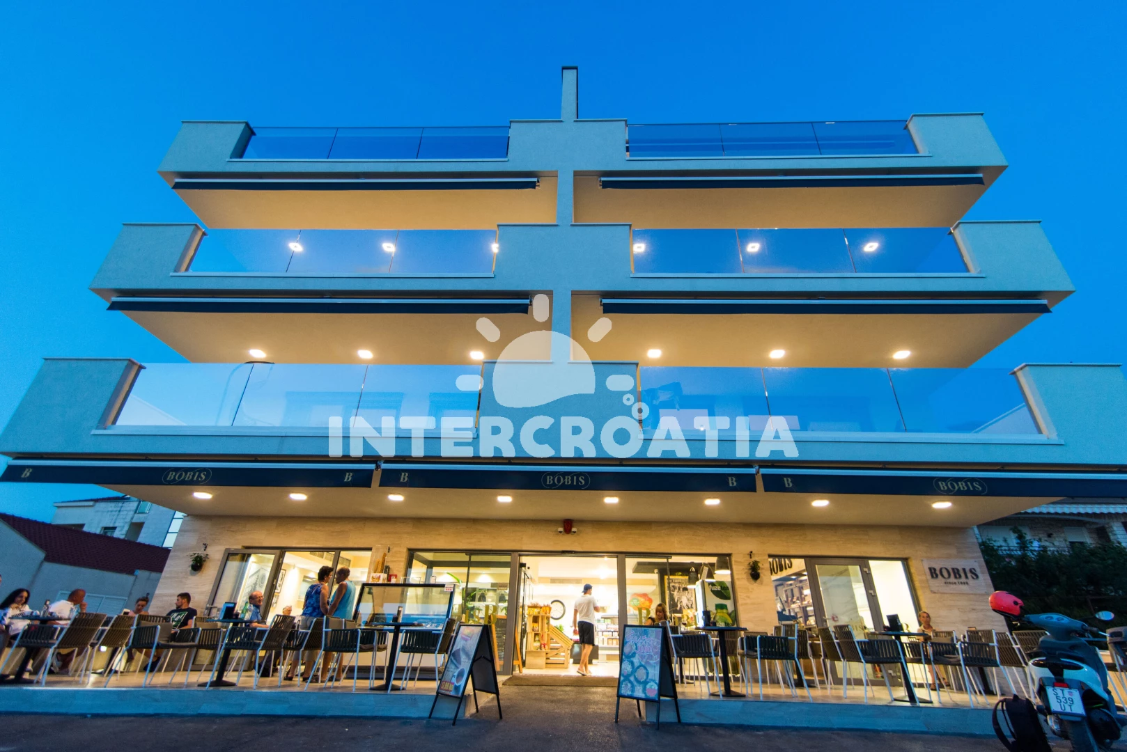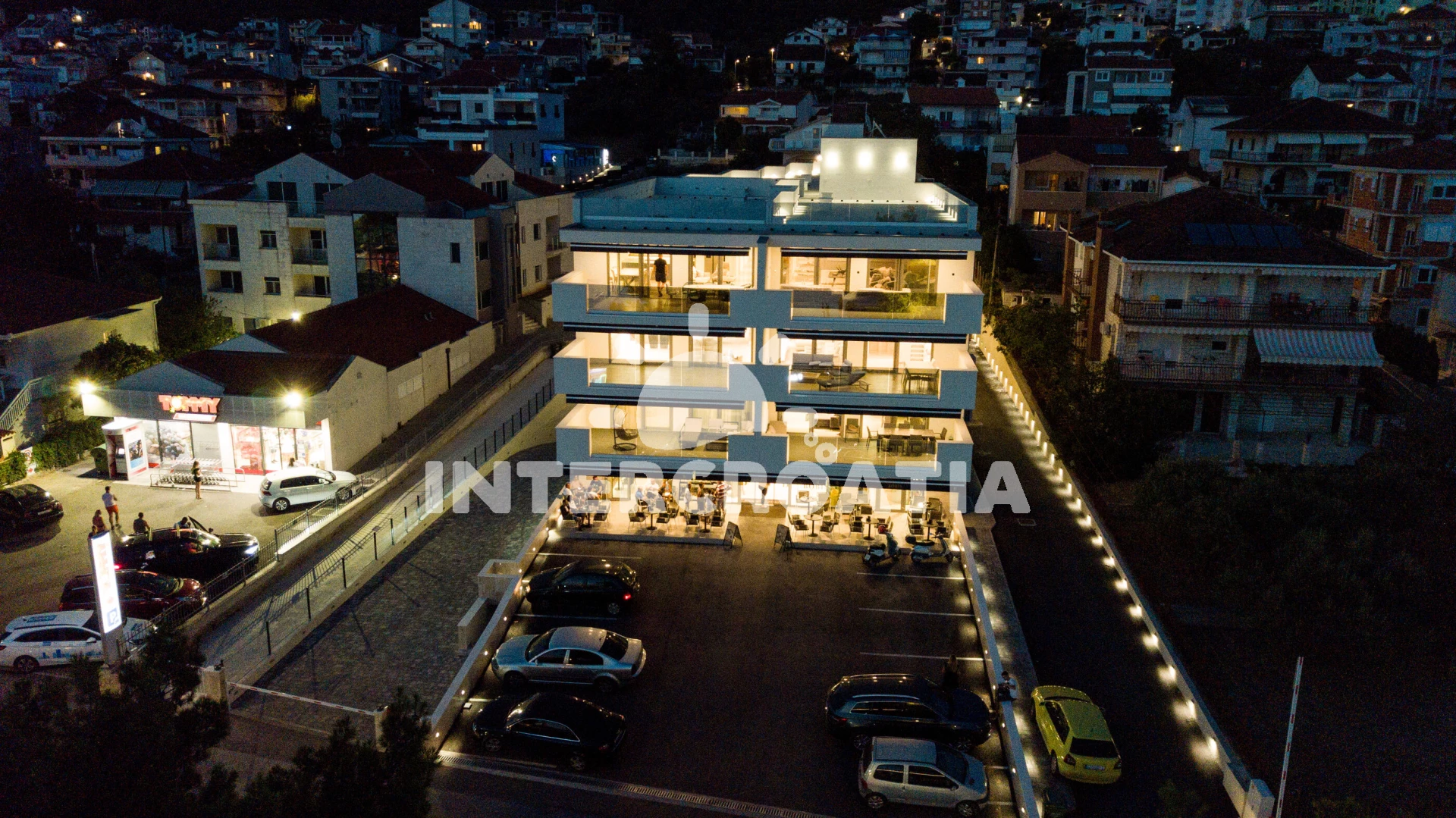 Vzdálenosti: Moře 10 m, pláž 20 m (oblázky), bar 20 m, supermarket 50 m, restaurace 50 m, směnárna 200 m, půjčovna kol 300 m, centrum 500 m, lékárna 500 m, pošta 700 m, ambulance 700 m, banka 3 km, čerpací stanice 3 km, letiště (Split) 7 km,
