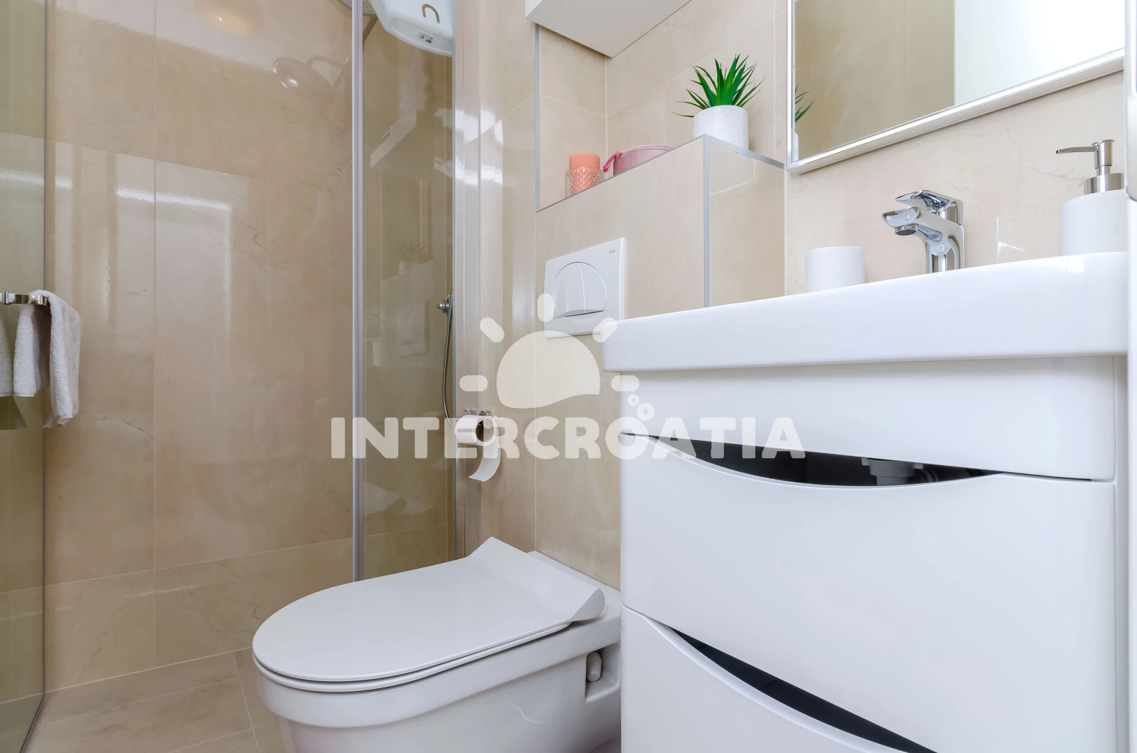 Vzdálenosti: Moře 700 m, pláž 700 m (skalnatá, oblázková a betonové desky), supermarket 200 m, bar 200 m, restaurace 200 m, lékárna 800 m, centrum 1 km,
