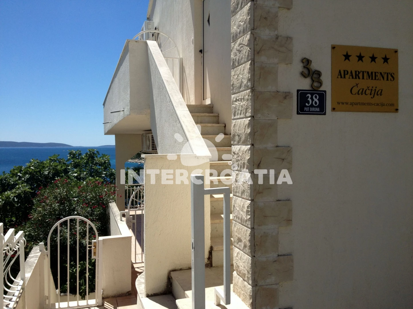 Vzdálenosti: Moře 80 m, pláž 80 m (skalnatá, oblázková a betonové desky), supermarket 50 m, bar 50 m, restaurace 50 m, kotviště pro čluny 200 m, marina 500 m, veřejná doprava 1 km, pošta 1 km, směnárna 1 km, potápění 1 km, půjčovna motorových člunů 1 km, půjčovna kol 1 km, lékárna 1 km, banka 1 km, ambulance 1,2 km, centrum 1,2 km, čerpací stanice 3,5 km, muzeum 4 km, letiště (Split) 12 km,