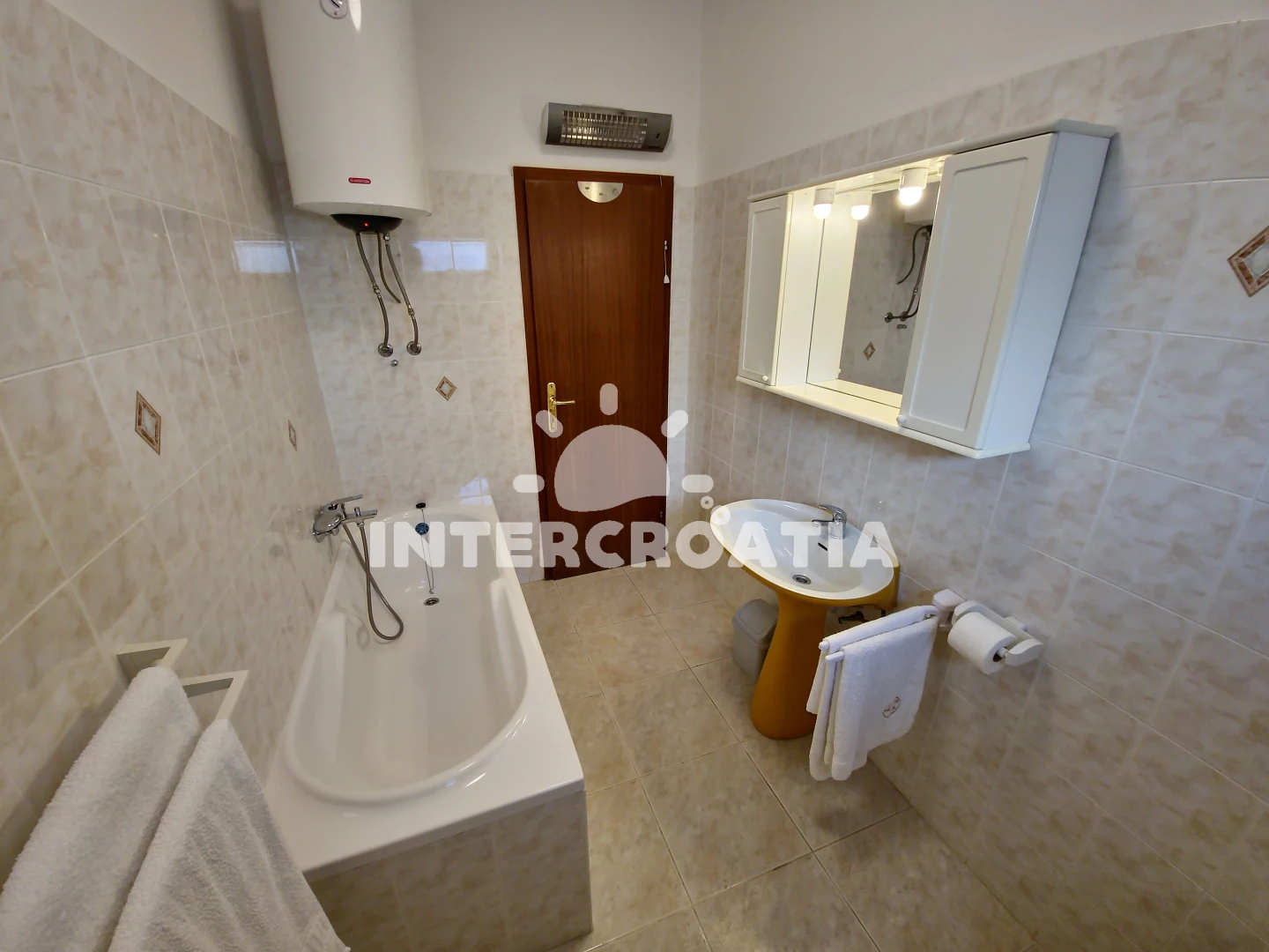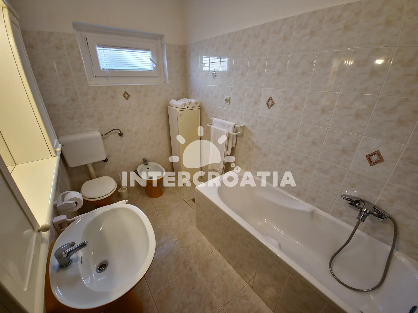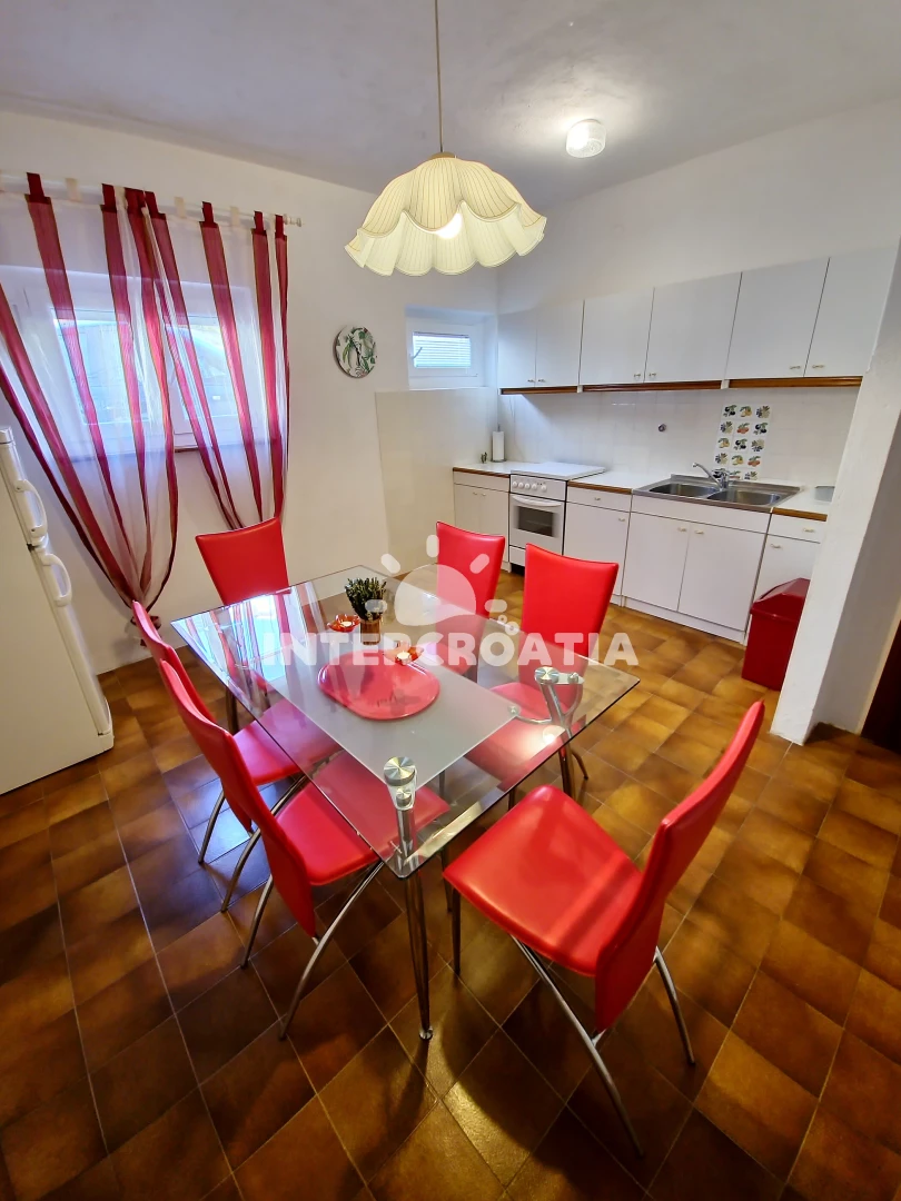 Apartmán se nachází 80 m od moře a pláže. Pláž je skalnatá, oblázková a betonové desky. U objektu je k dispozici společná zahrada s posezením a grilem. Parkování je před domem.