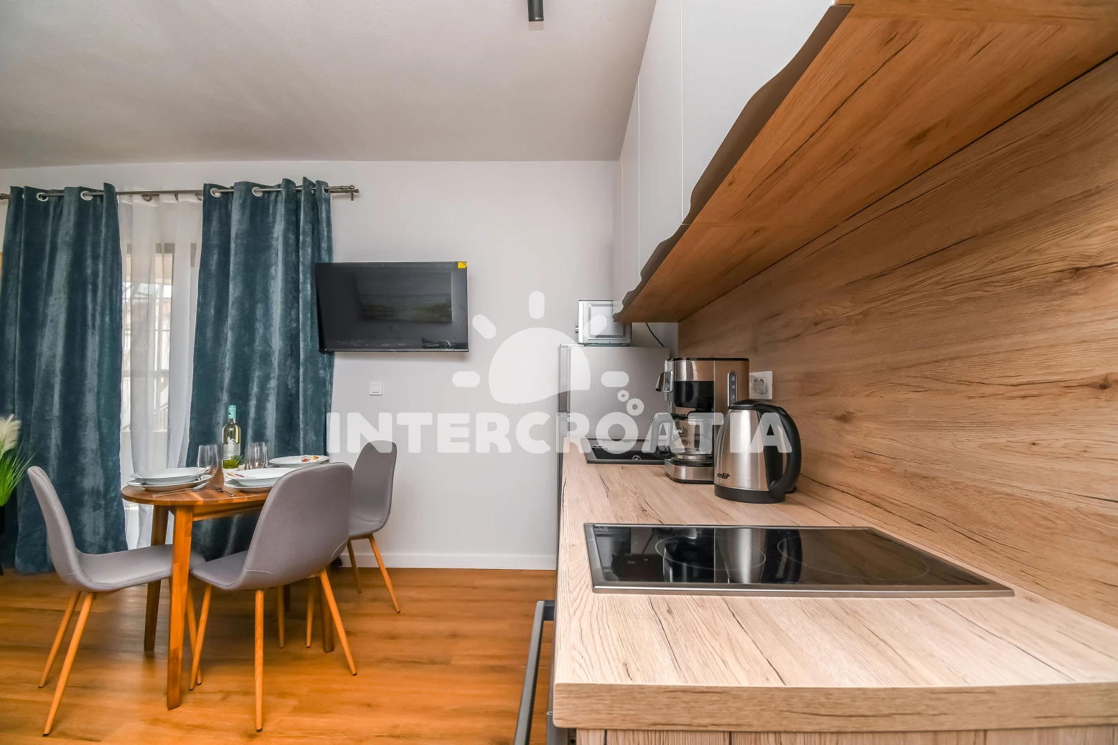 Apartmán typu studio (30 m2) s balkonem. Nachází se ve 2. patře objektu. Kuchyňská linka je vybavena varnou deskou, troubou, kávovarem, myčkou na nádobí, mikrovlnnou troubou, rychlovarnou konvicí,…