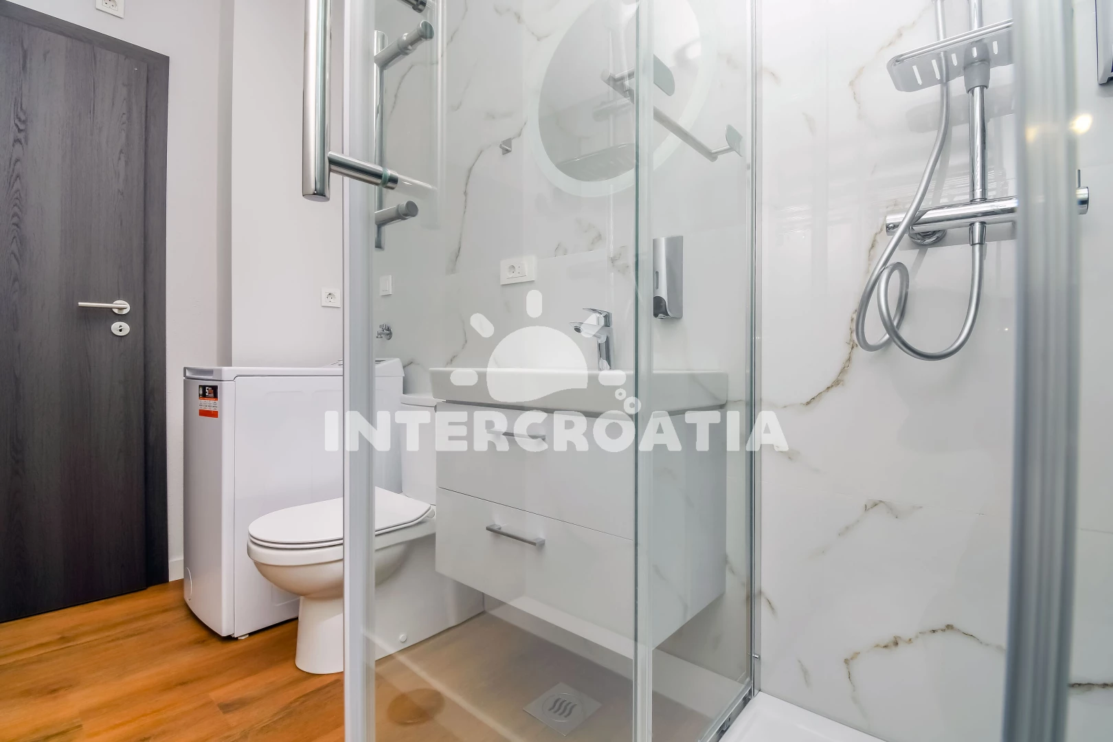 Apartmán (45 m2) s balkonem. Nachází se ve 2. patře objektu. Apartmán má 1 ložnici a je vhodný pro až 4 osoby. Kuchyňská linka je vybavena varnou deskou, troubou, kávovarem, myčkou na nádobí, mikrovlnnou troubou, rychlovarnou konvicí, nádobím, lednicí, mrazákem. V obývací místnosti je rozložitelná pohovka (extra lůžko pro 2 osoby). K dispozici televize, žehlička. Ložnice s dvoulůžkem. Koupelna se sprchovým koutem, umyvadlem, fénem a WC.
