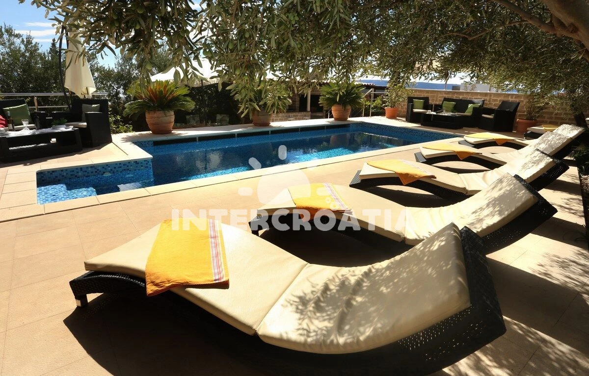 Apartmán se nachází 1000 m od moře a pláže. Pláž je oblázková. Apartmán disponuje bazénem s lehátky pro ubytované hosty. U objektu je k dispozici společná zahrada s posezením a grilem. Parkování je před domem.
