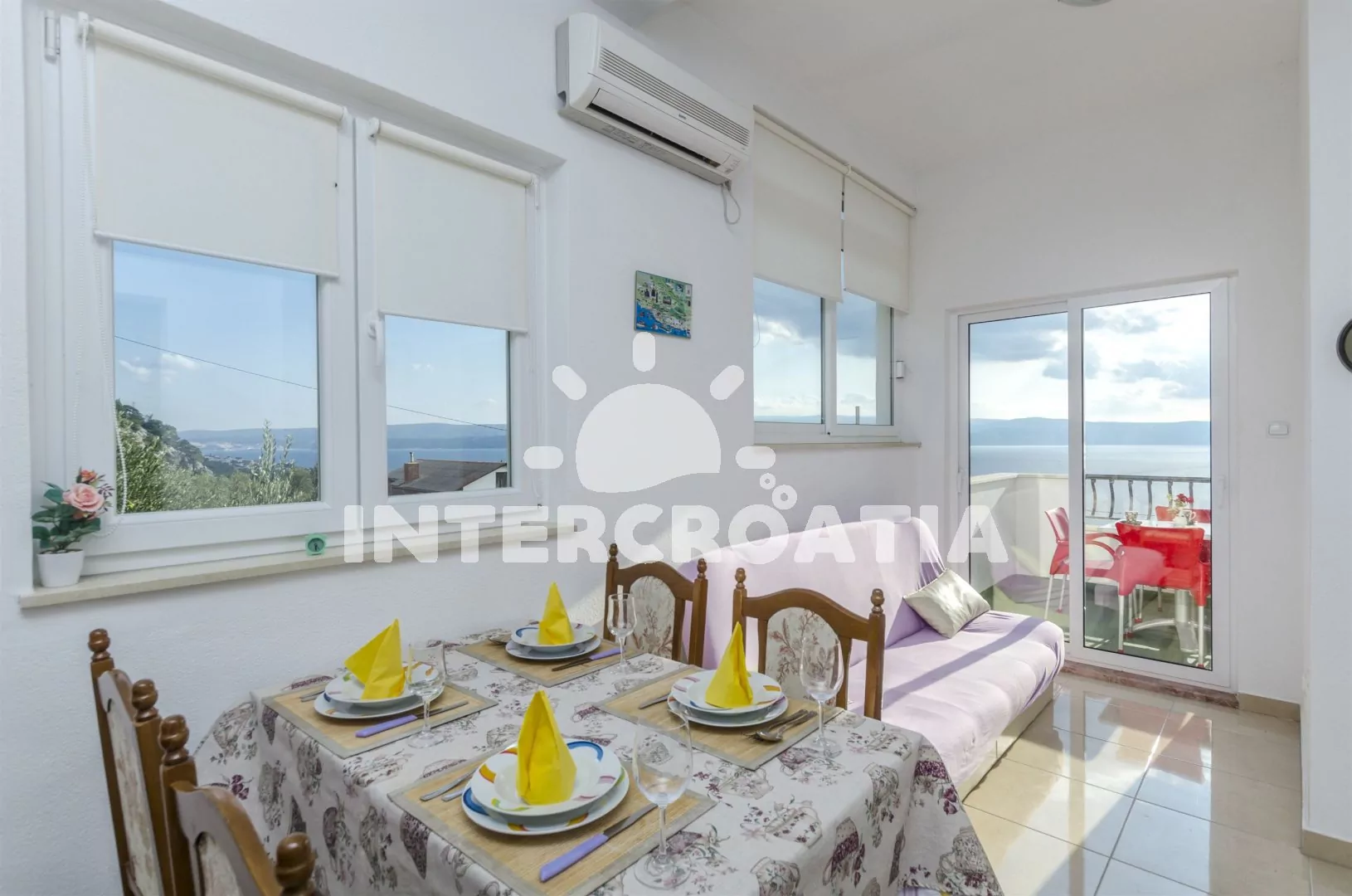 Apartmánová vila s terasou, posezením a krásným výhledem na pohoří a moře se nachází ve vyhledávané lokalitě Omiš.