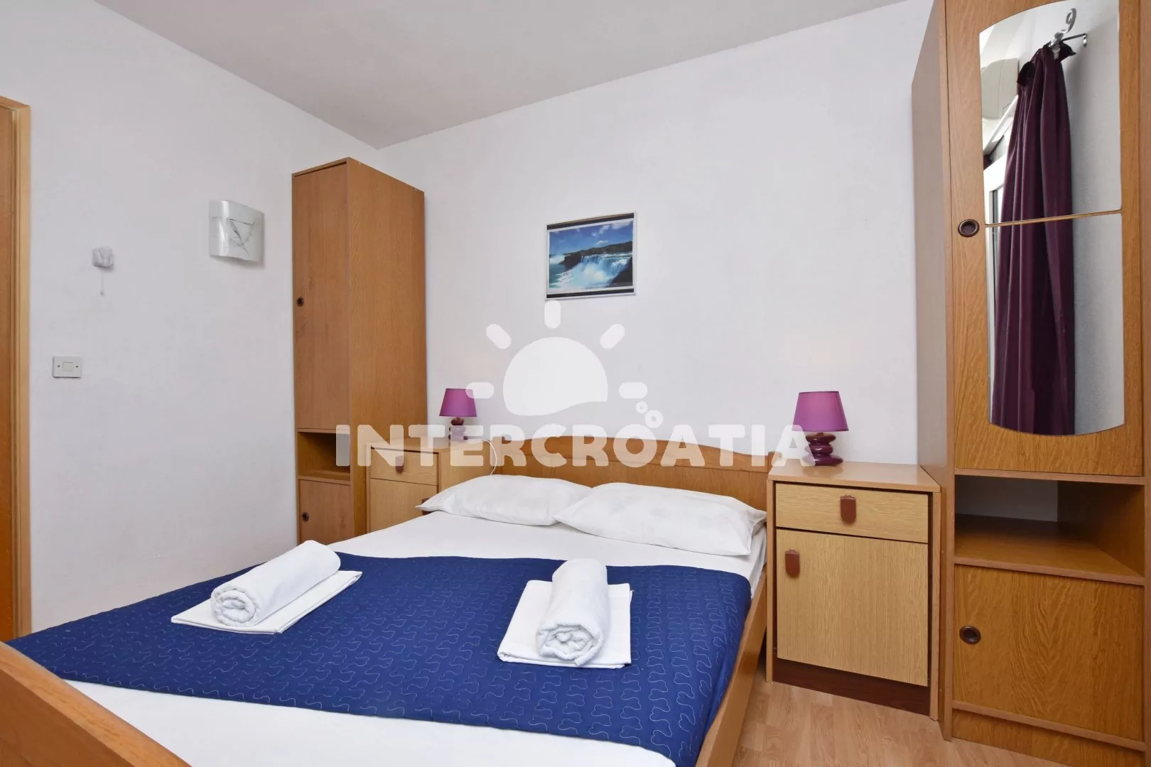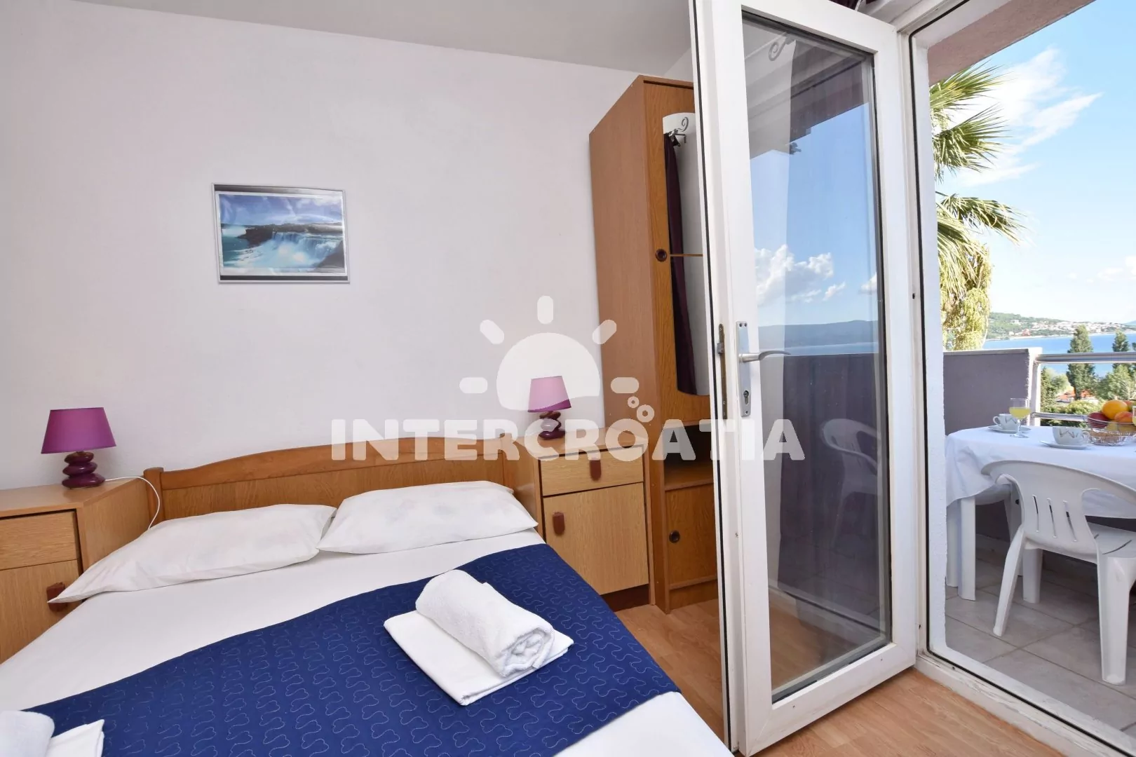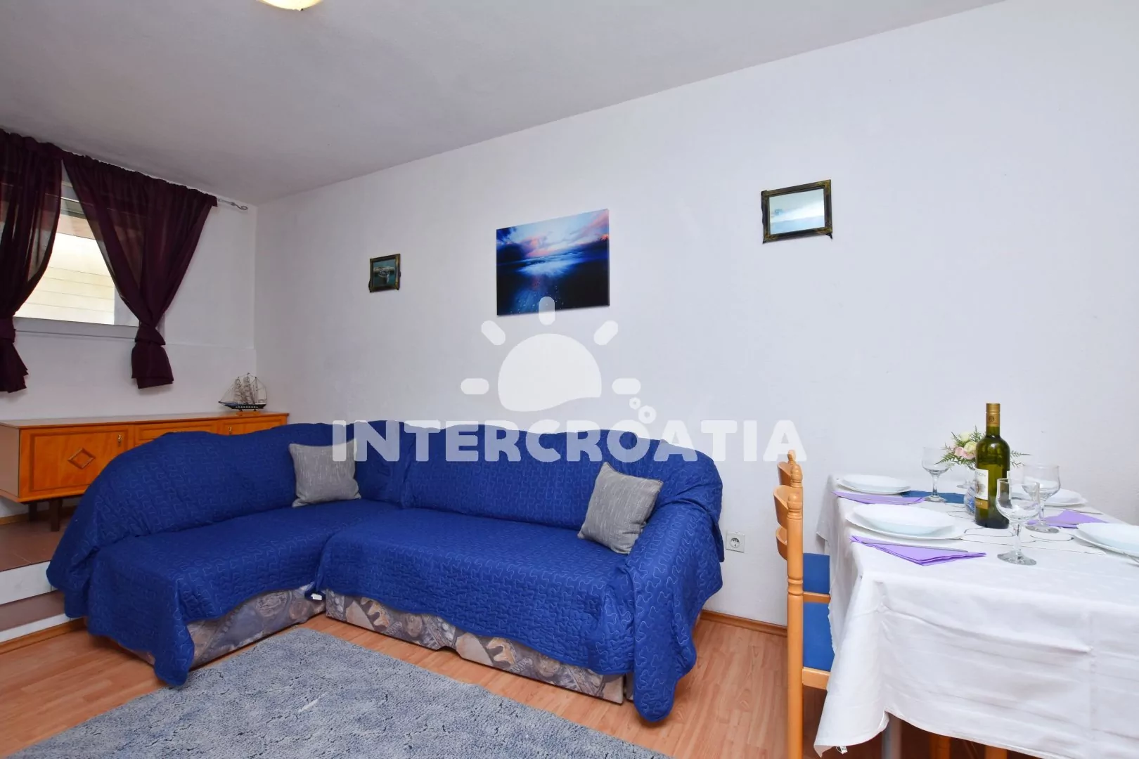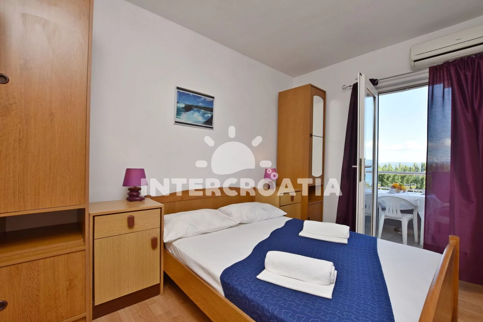 Apartmán s lodžií a výhledem na moře, který je vhodný pro 2 až 4 osoby. Nachází se v přízemí domu. Obývací pokoj je spojený s kuchyní. Kuchyňská linka s elektrickým dvouplotýnkovým vařičem, digestoří, rychlovarnou konvicí, nádobím a lednicí s mrazákem. Obývací pokoj s jídelním stolem pro 4 osoby, rozložitelnou pohovkou (extra lůžko pro 2 osoby) a televizí. Ložnice s jedním dvoulůžkem, klimatizací a vstupem na balkon. Koupelna se sprchovým koutem umyvadlem a wc. Parkovací místa jsou k dispozici 500 - 1000 m od domu.