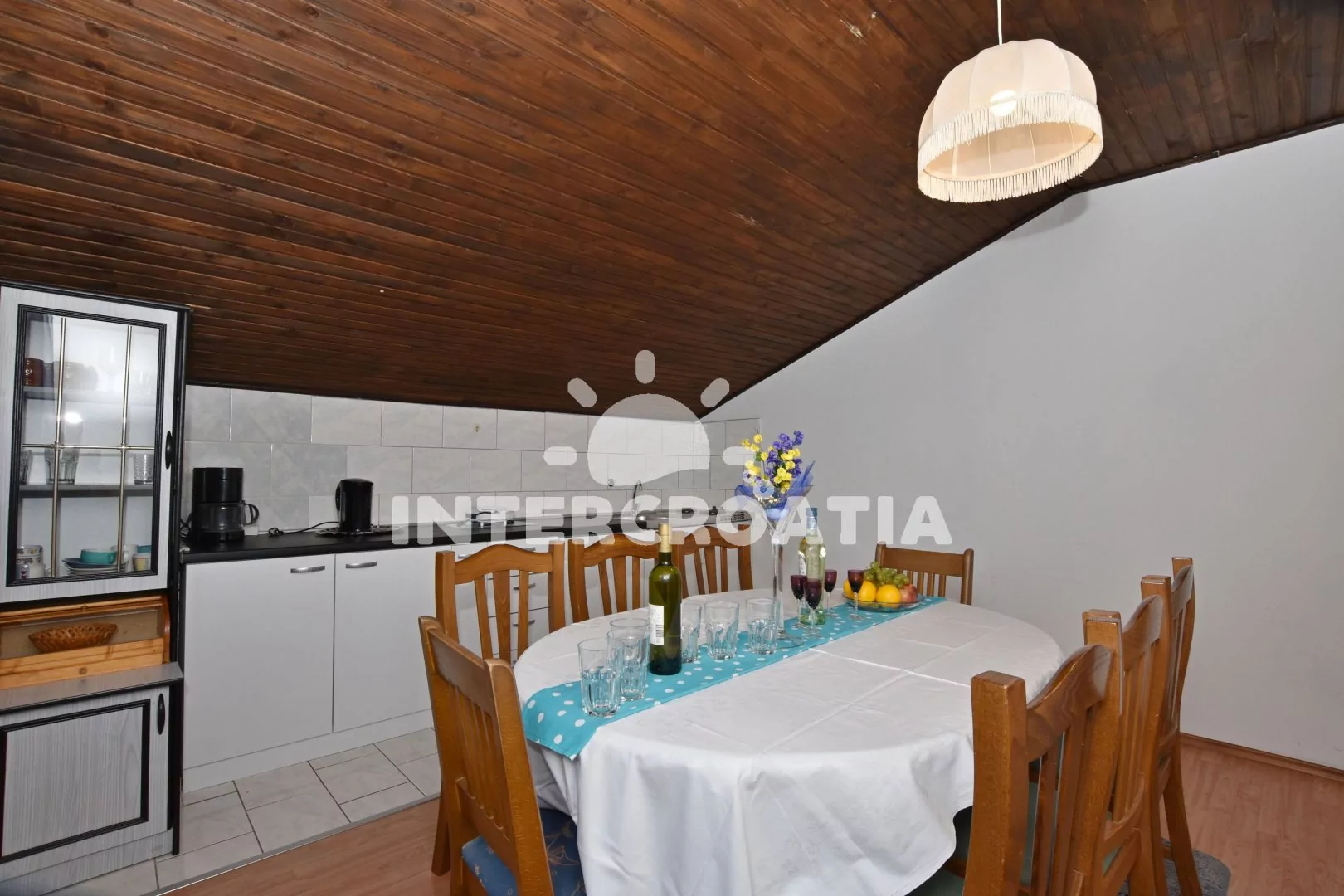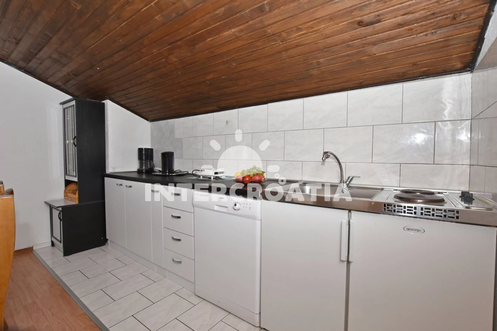 Rozlehlý apartmán v druhém patře domu s dvěma balkony, terasou a výhledem na moře. Nabízí ubytování pro 6 až 8 osob. Samostatná kuchyň a obývací pokoj. Kuchyňská linka s elektrickým dvouplotýnkovým… Více informací