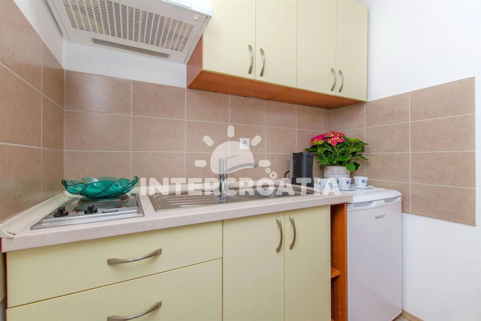 Vzdálenosti: Moře a pláž 410 m, centrum 100 m, restaurace a bar 50 m, obchod 100 m, lékárna, pošta, banka a směnárna 100 m, muzeum 80 m, veřejná doprava 200 m, ambulance, čerpací stanice, potápění, tenisové kurty a mini golf 1 km, půjčovna motorových člunů a cyklistických kol 300 m, diskotéka 2 km, trajekt (Split) 25 km, letiště (Split) 40 km.