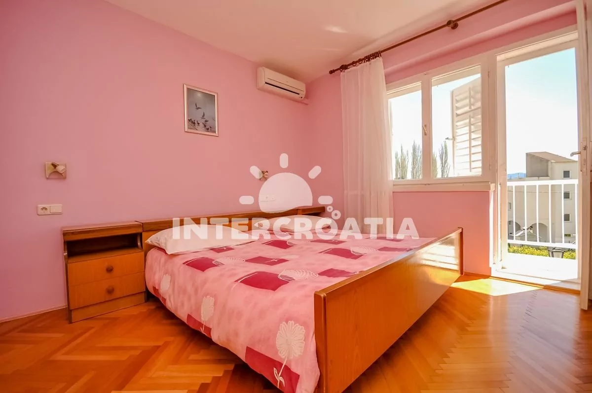 Apartmán s lodžií a výhledem na moře je vhodný pro 2 osoby. Pokoj je vybavený varnou deskou, rychlovarnou konvicí, nádobím a chladničkou. Dále jedním dvoulůžkem, televizí se satelitním programem, klimatizací a vstupem na balkon. Koupelna se sprchovým koutem, umyvadlem a wc. Hostům je k dispozici parkování u objektu zdarma.