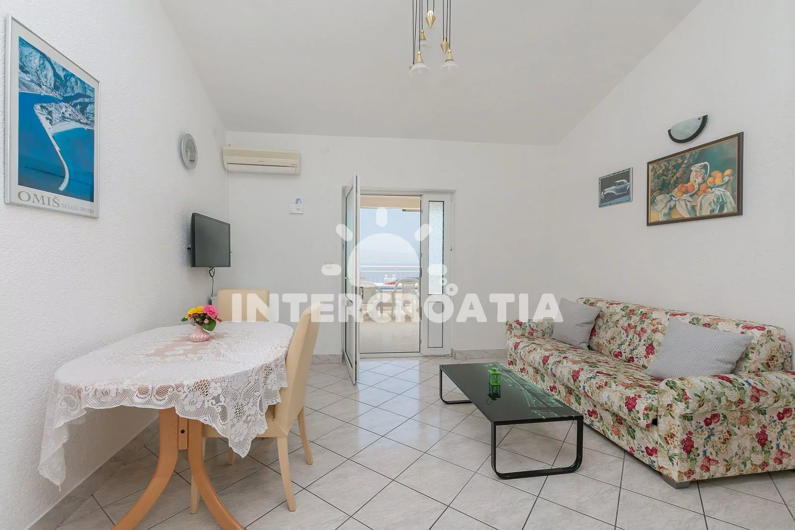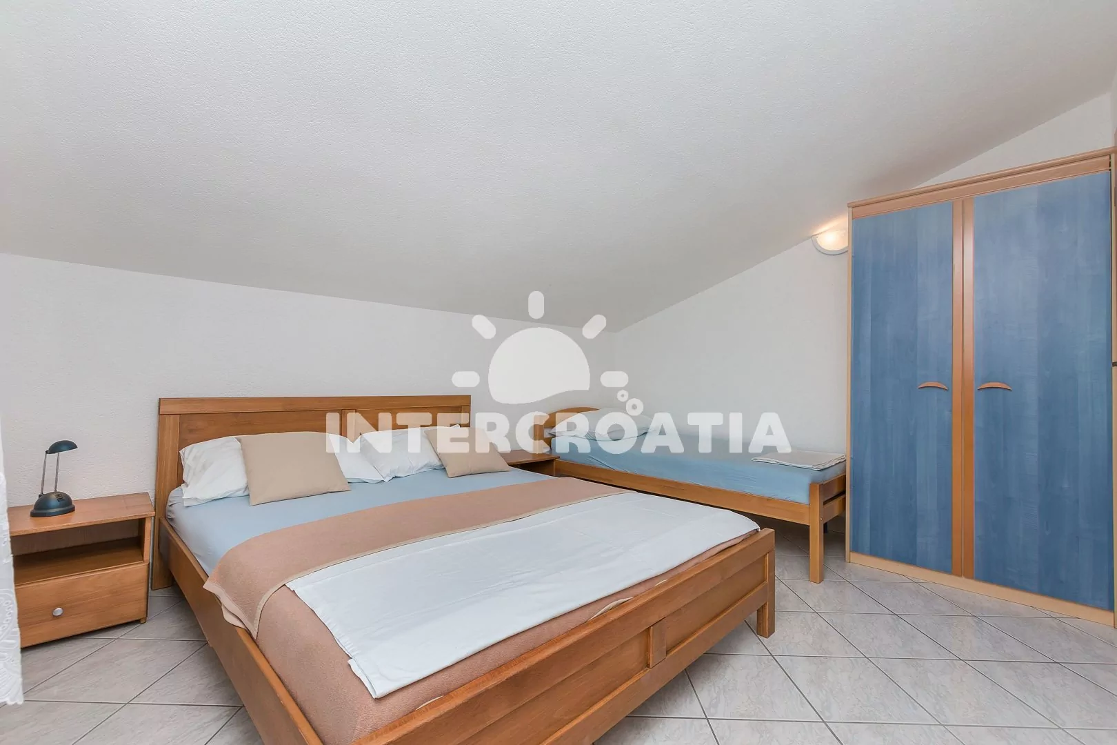 Apartmán (40 m2) se společnou terasou, posezením a jedinečným výhledem na moře se nachází ve 3. patře domu. Apartmán má 1 ložnici a je vhodný pro až 4 osoby. Obývací pokoj je spojený s kuchyní.…